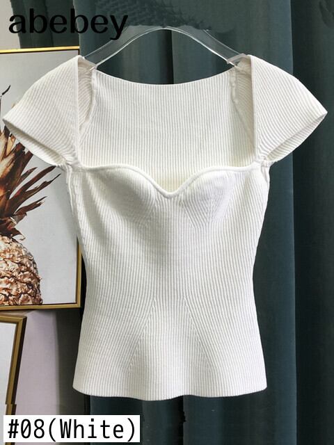 2022春新作スクエアカラーノースリーブニットプルオーバースリムショートハイウエストトップ女性タンクトップWK69001l ハイウェスト スプリング 春物 Abe78245644979