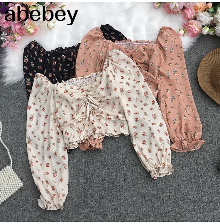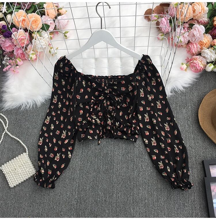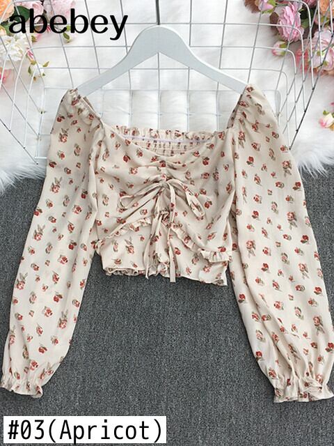 2022春オールマッチスクエアカラーパフスリーブシャツ巾着シャーリングロングスリーブシャツトップ 長袖 スプリング 春物 スクウェア Abe31575626037