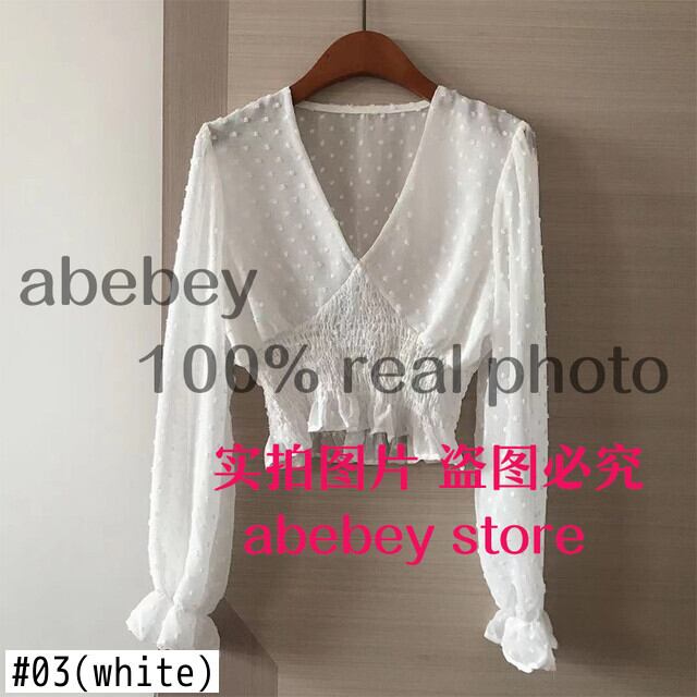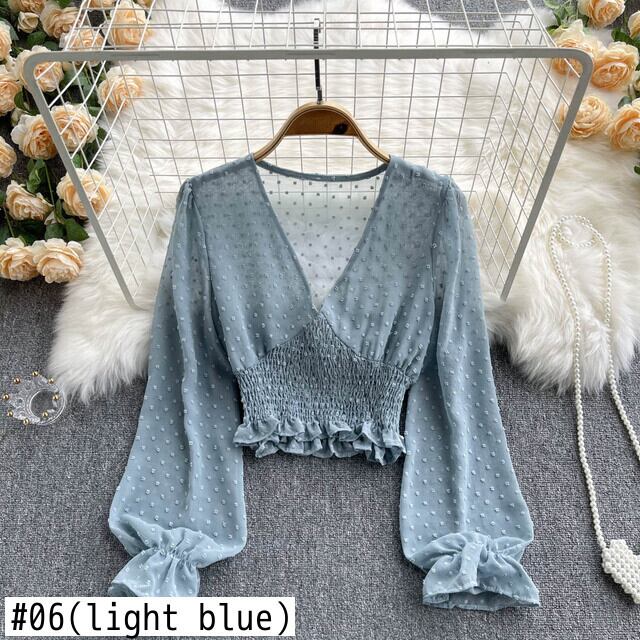 2022 秋の女性ブラウス長袖 V ネック弾性シャーリングスリムトップスストリートショートブラウス ロング エラスティック 伸縮 オータム 秋物 Vネック Abe47275998768