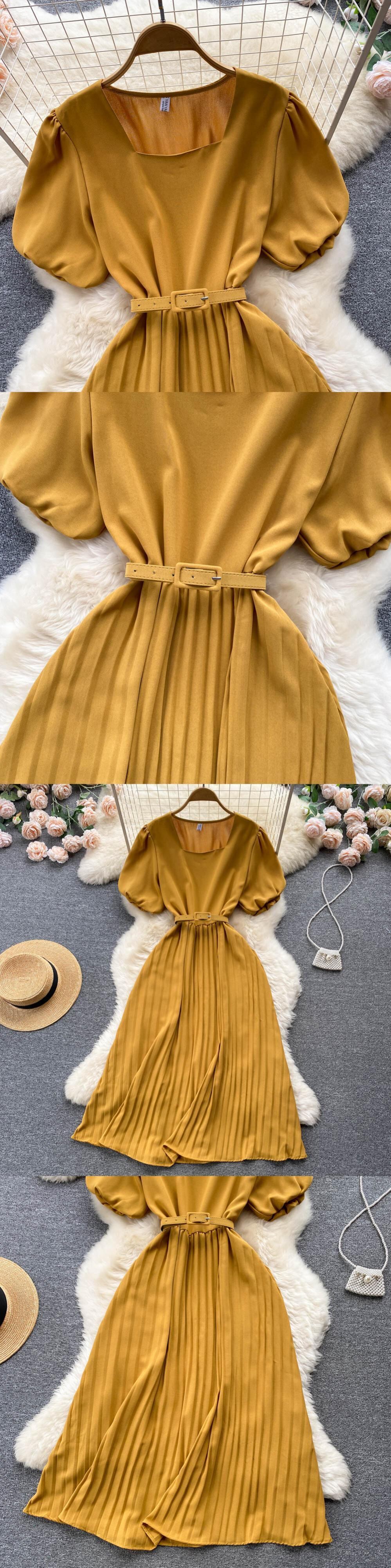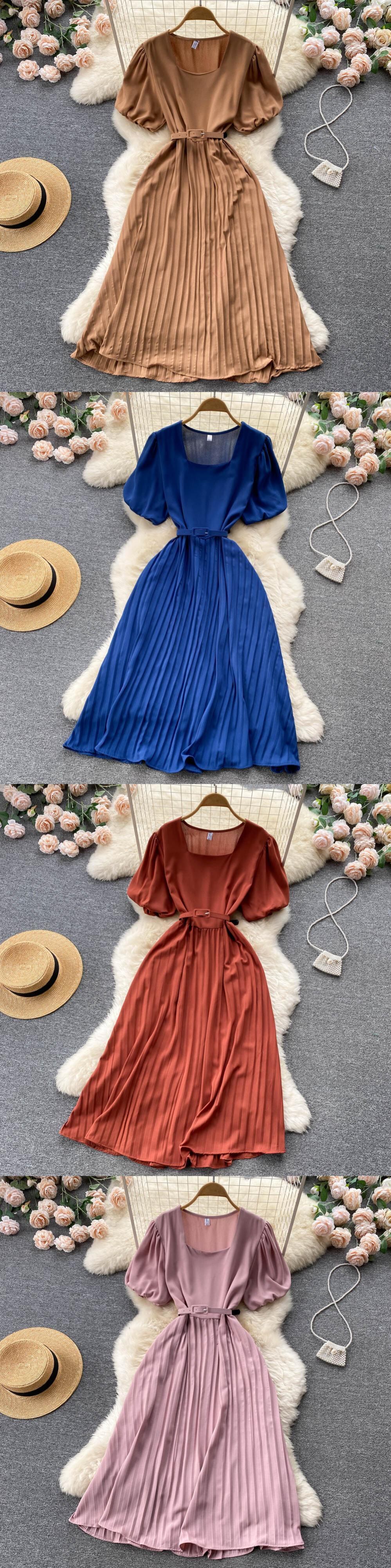 グリーン ミディ レトロ ドレス女性の 2022 無地レースアップ ウエスト スリム ミディ プリーツ ドレス オフィス レディ vestidos デ mujer ソリッドカラー 会社 学校 通勤や通学にも Abe29550205992