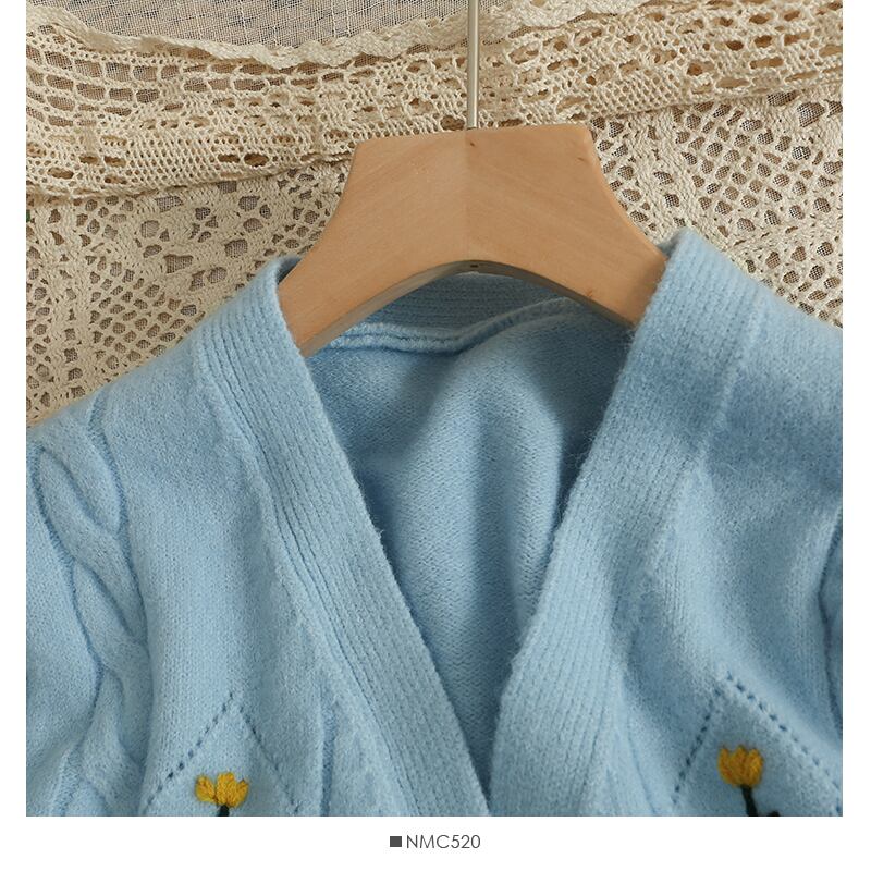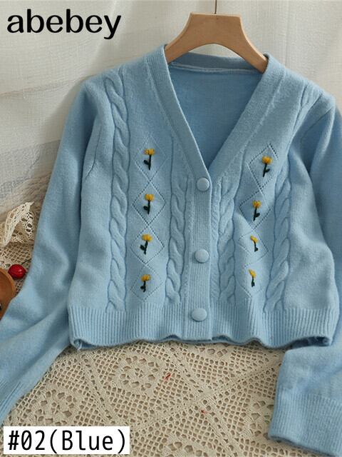 甘い刺繍 V ネックセーターカーディガン女性新鮮な秋クロップドニットジャケット長袖ボタンアップセーター ロング 大人ガーリー スウィート キュート カジュアル オータム 秋物 Vネック Abe32888707742