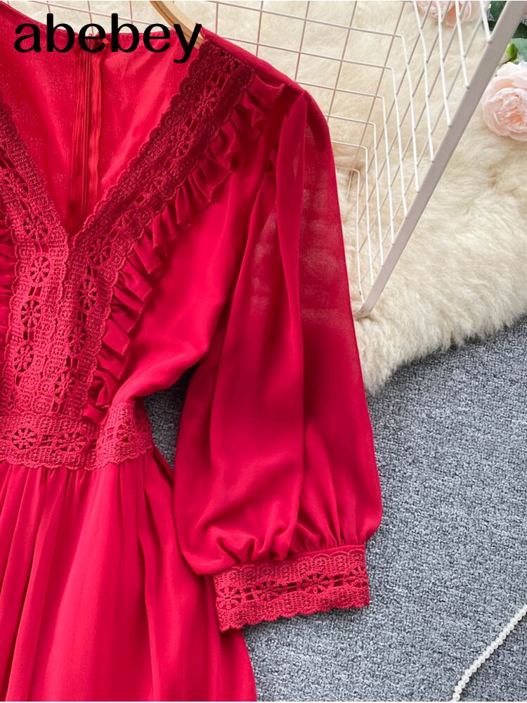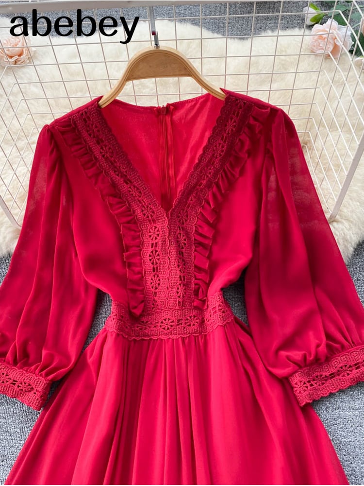 女性ロングドレス自由奔放に生きる夏のビーチレッドドレス Laides マキシ V ネックサンドレスセクシーなローブ Longue 2022 サマー 夏物 Vネック Abe52820123242