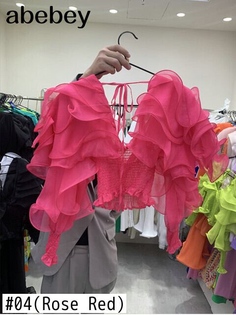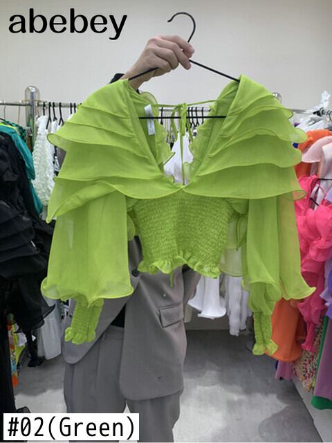 スリム 無地 パッチワーク フリル レースアップ ブラウス レディース ディープVネック ルーズ ロングスリーブ 2022 春 長袖 ラッフル スプリング 春物 ソリッドカラー Abe4652369561