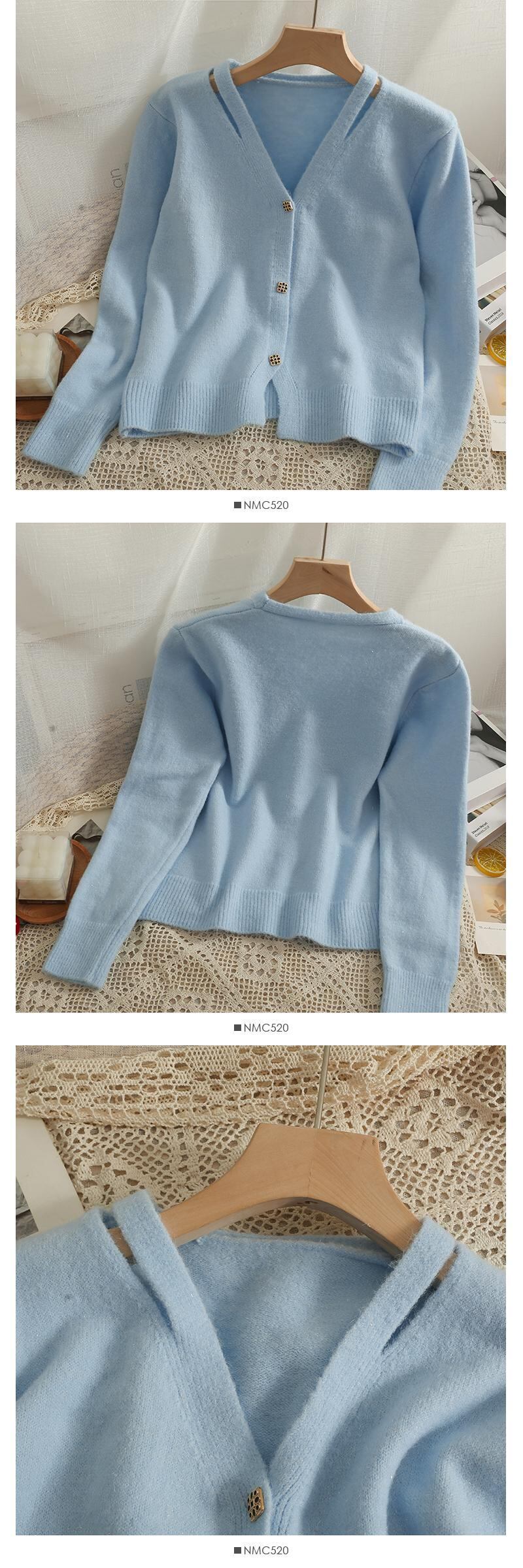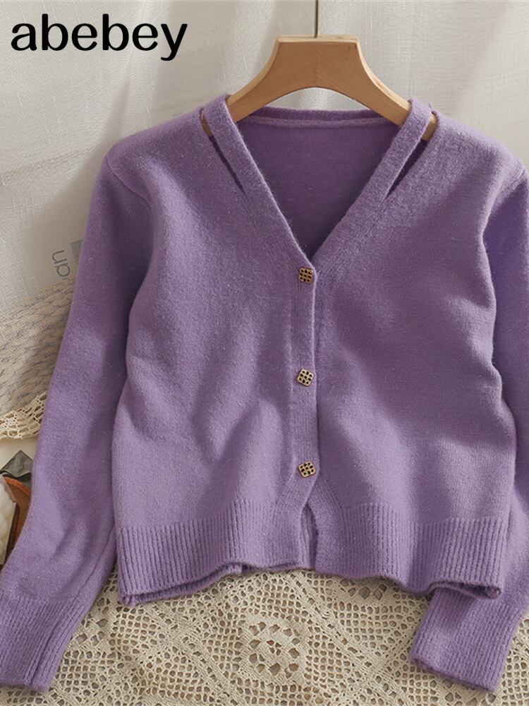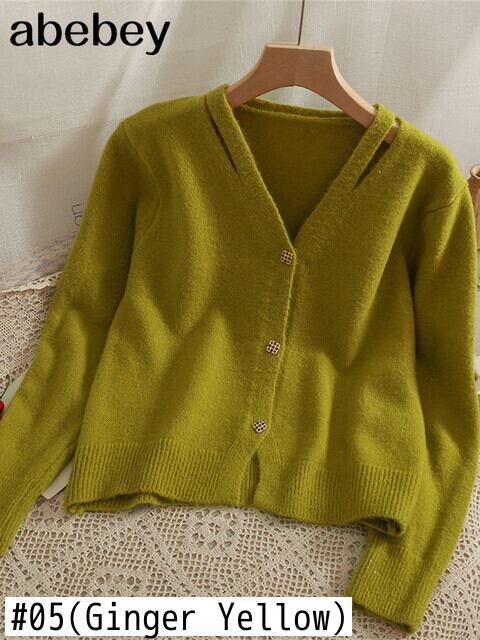 女性ニットカーディガンセーター秋長袖ルーズコートボタン厚い V ネック無地トップス 2022 ロング オータム 秋物 Vネック ソリッドカラー Abe9372224483