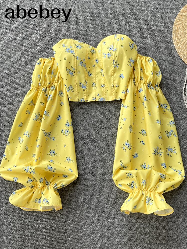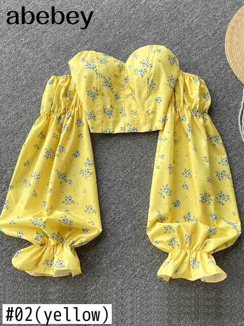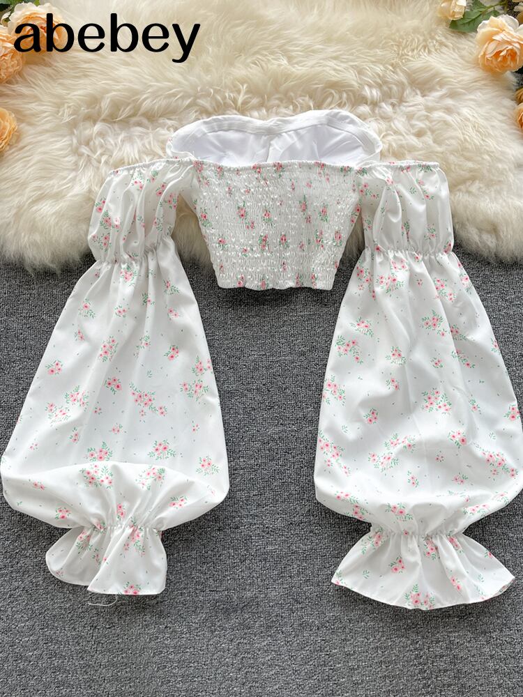 女性自由奔放に生きる花柄ブラウスフレンチレーススクエアカラーパフスリーブスリムフリルトップス秋弾性シャーリングブラウス ラッフル エラスティック 伸縮 オータム 秋物 スクウェア Abe83988149105