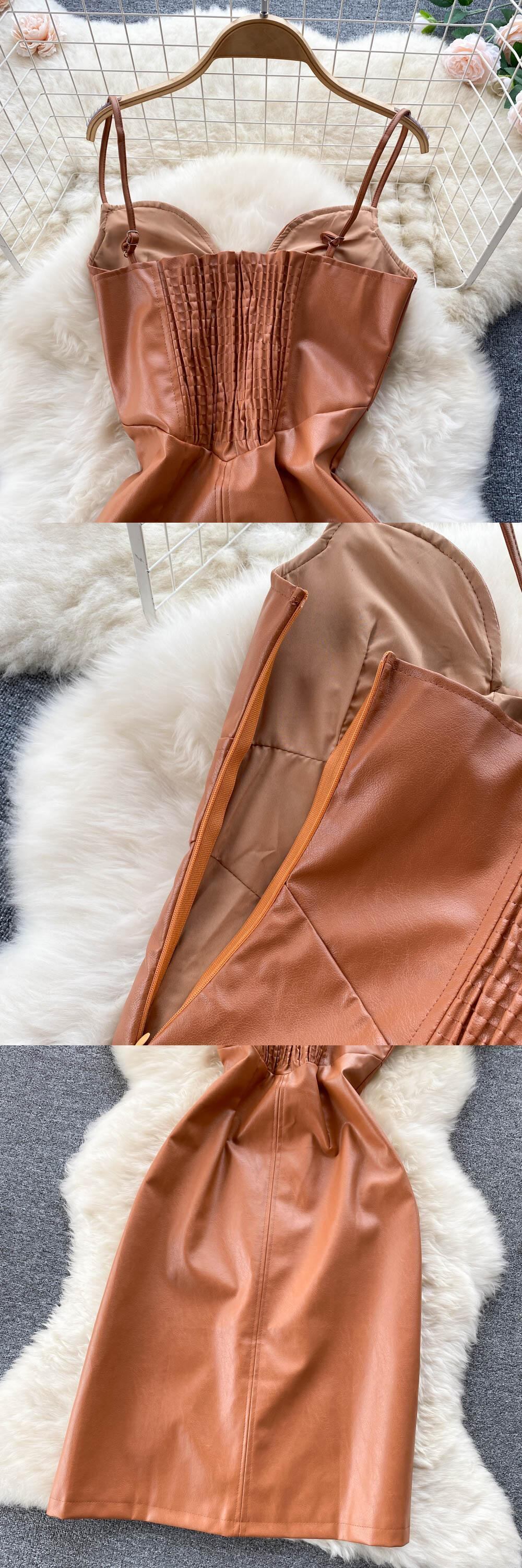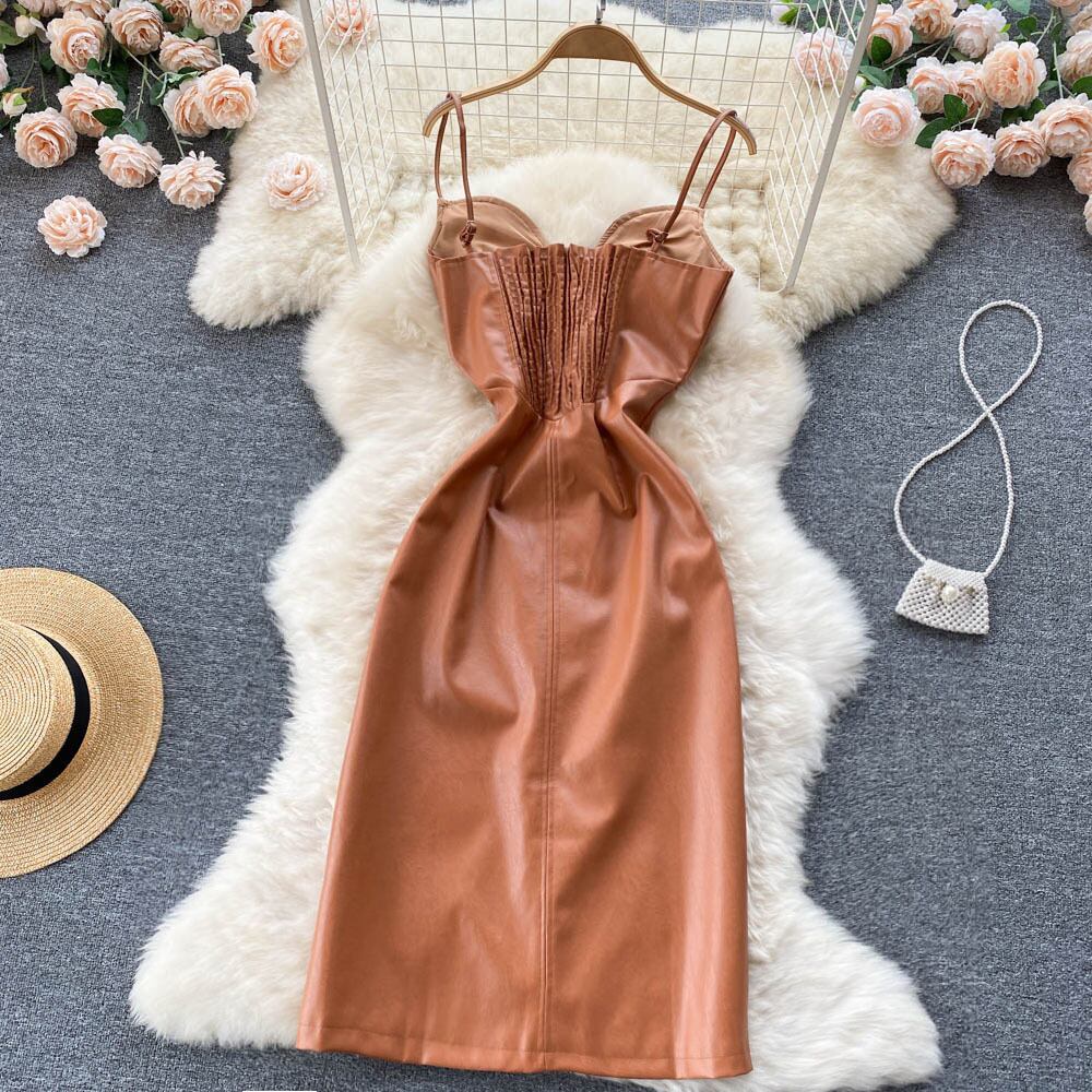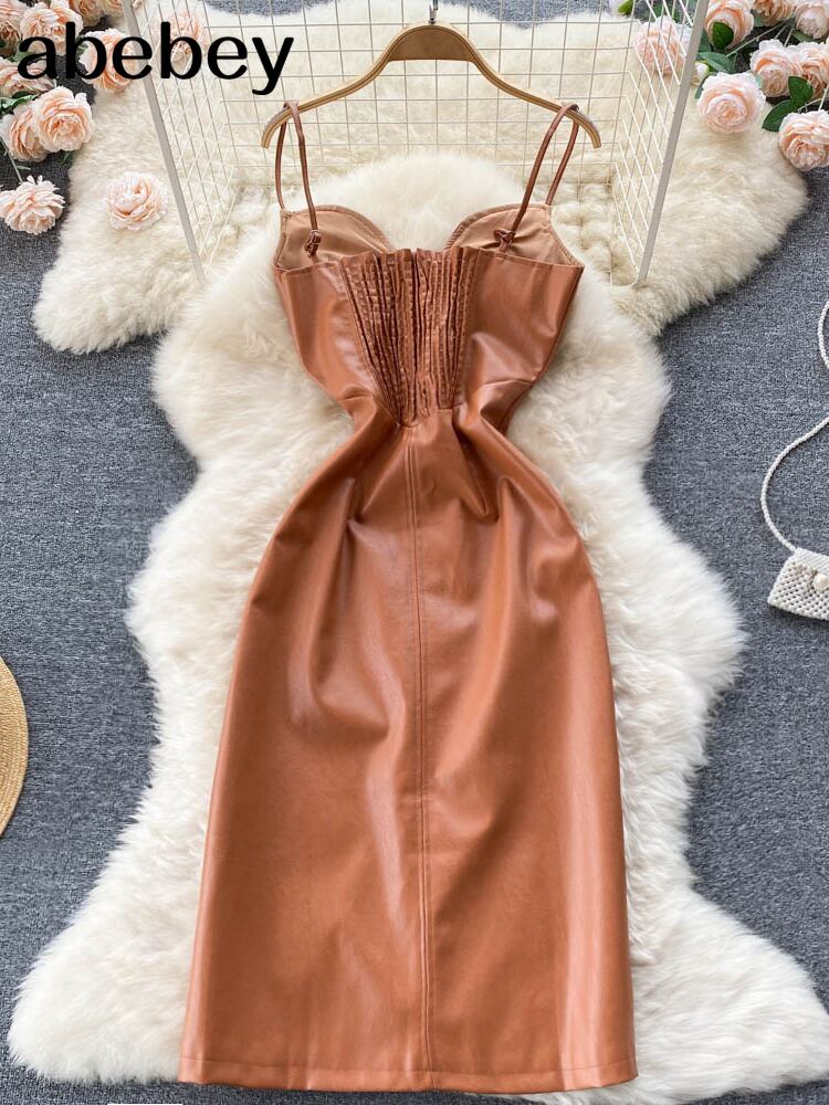 夏のストラップセクシーなドレスノースリーブ 2022 ミディビーチサンドレスフレンチストリート PU バックレスロングスリムドレスローブ サマー 夏物 Abe41097421377