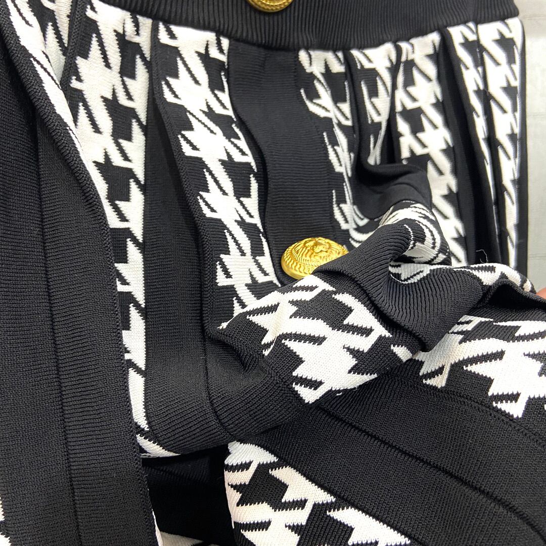 女性ミニスカートセクシーな 2 点セット千鳥格子柄初秋スキニーニットテニススーツ Abe38814721440