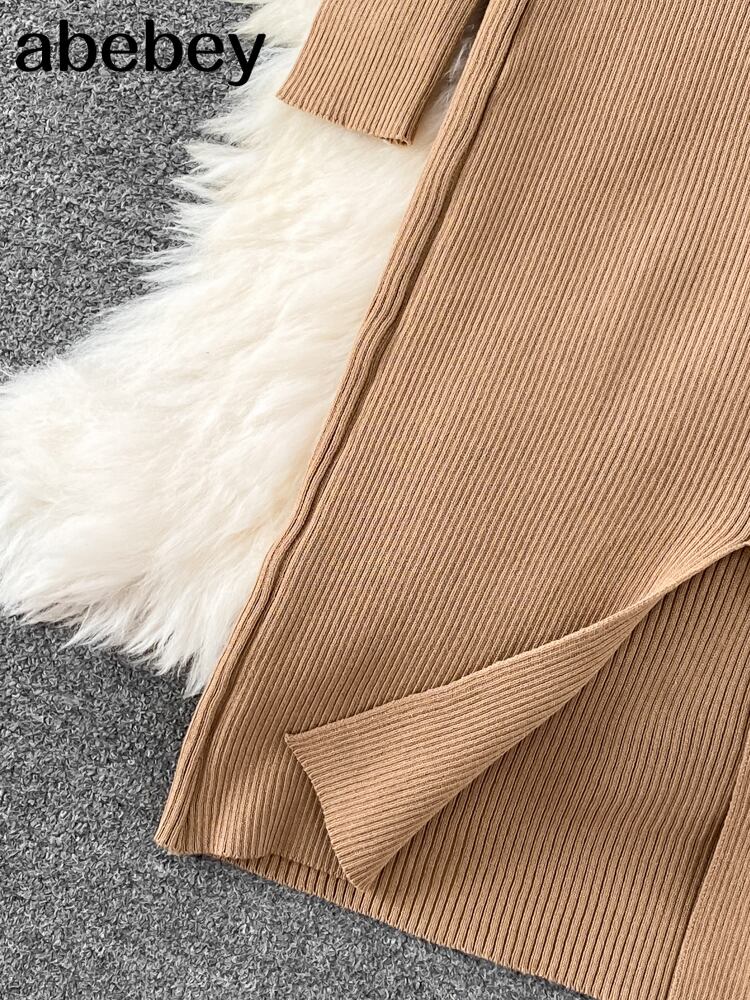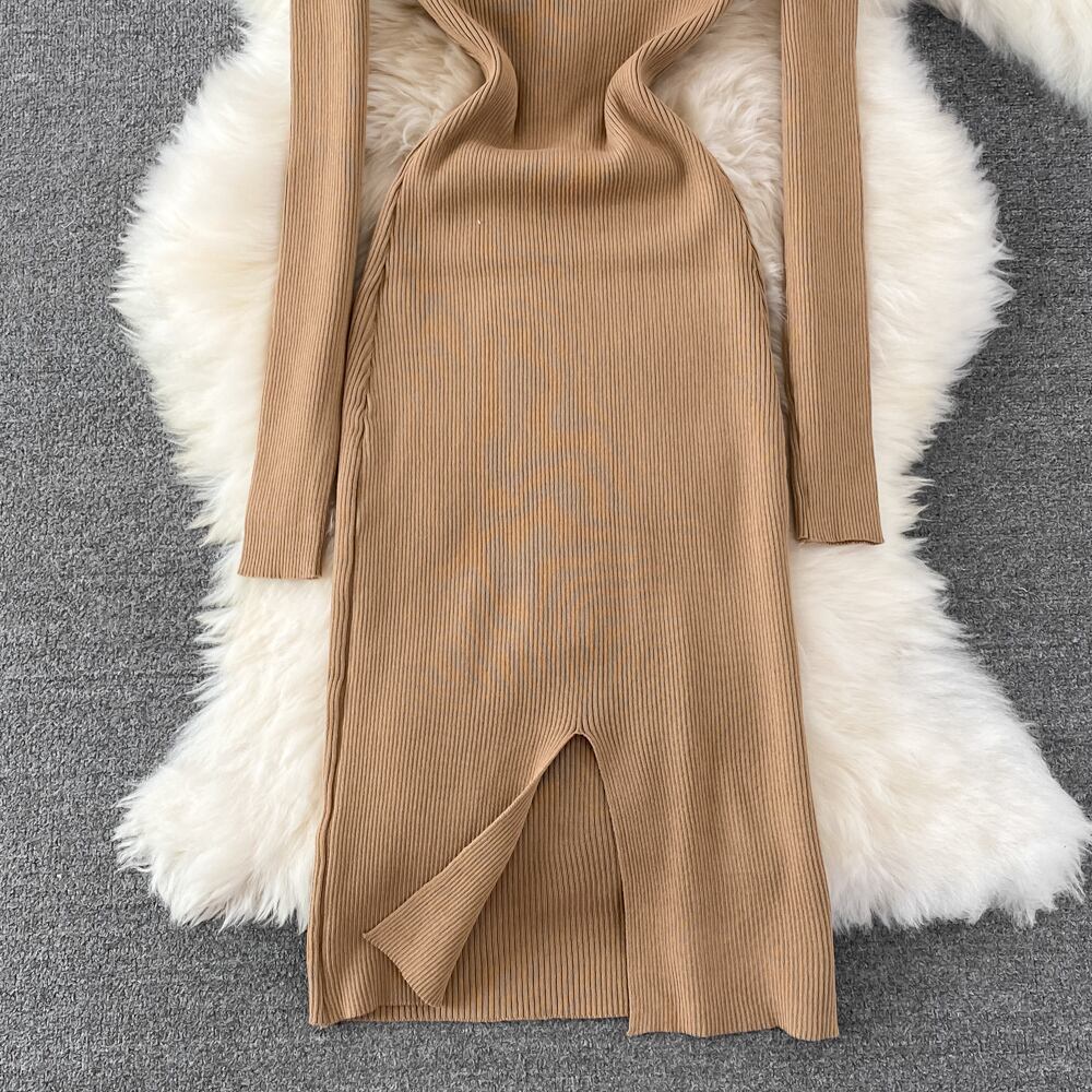 2022 固体女性ニットペンシルドレス長袖弾性スリムドレス秋冬セクシーなボディコン暖かいセータードレス ロング エラスティック 伸縮 オータム 秋物 ウィンター 冬物 ソリッドカラー Abe59071052939
