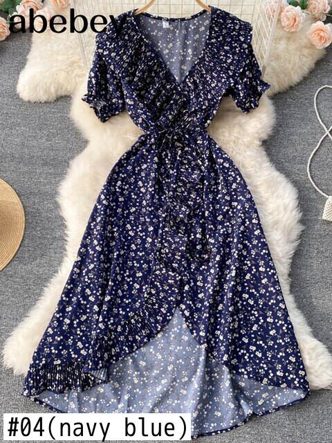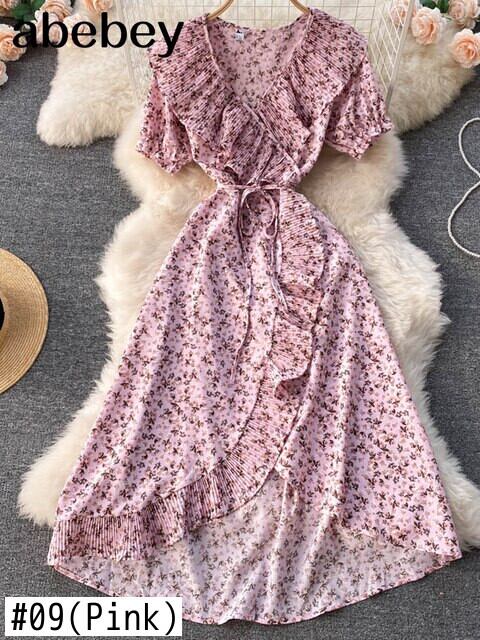 夏の花サンドレスフリル不規則なプレーリーシックなプリントドレス女性ボヘミアンビーチロングパーティーラップドレス ラッフル サマー 夏物 花柄 Abe27250262990