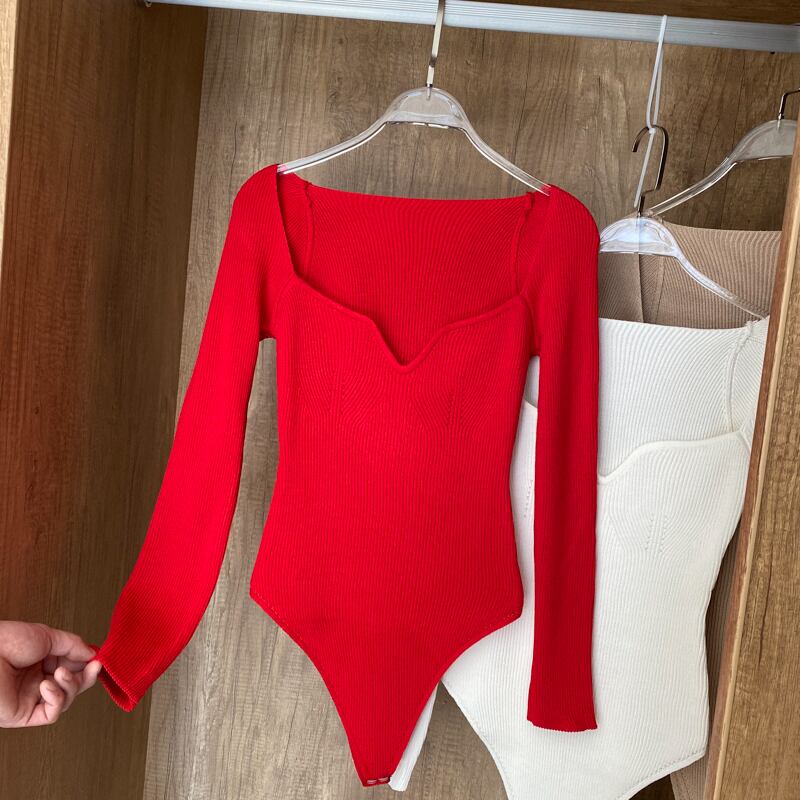 秋冬レディースセーターセクシーなローVネックロングスリーブレッド/カーキ/ホワイト遊び着ニットジャンパー2022 長袖 オータム 秋物 ウィンター 冬物 Abe62398503452