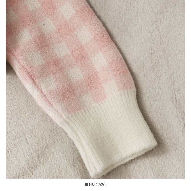 甘いチェック柄スリーピース レディース O ネック シングルブレスト 長袖 ルーズ セーター ショート ストラップ付き 2 点セット スカート ロング 大人ガーリー スウィート キュート カジュアル Oネック Abe40832564206