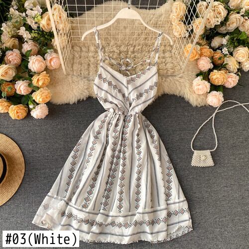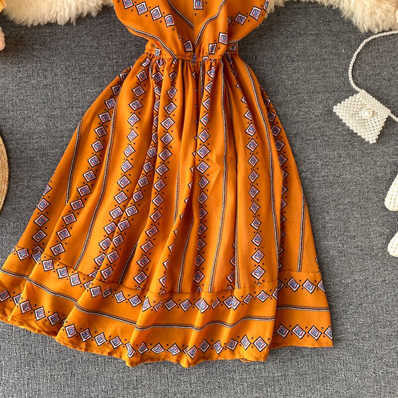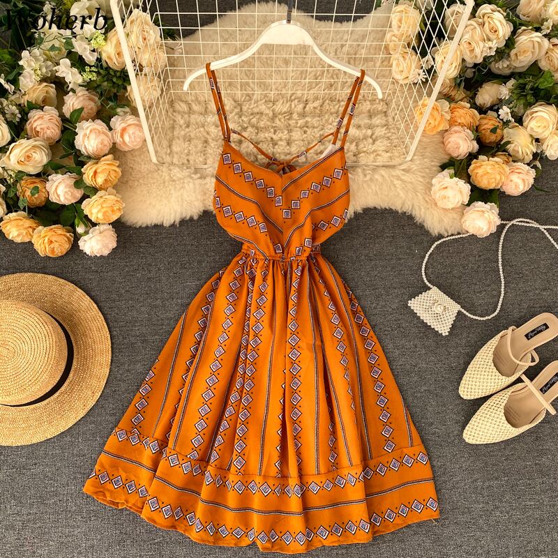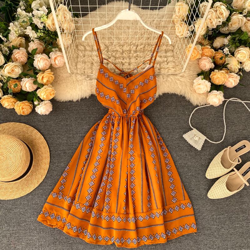 セクシーな V ネック背中の開いた花柄 Vestidos スリムウエストシフォンドレス女性の夏の A ラインスパゲッティストラップドレス 25753 サマー 夏物 Vネック Aライン Abe61519419484
