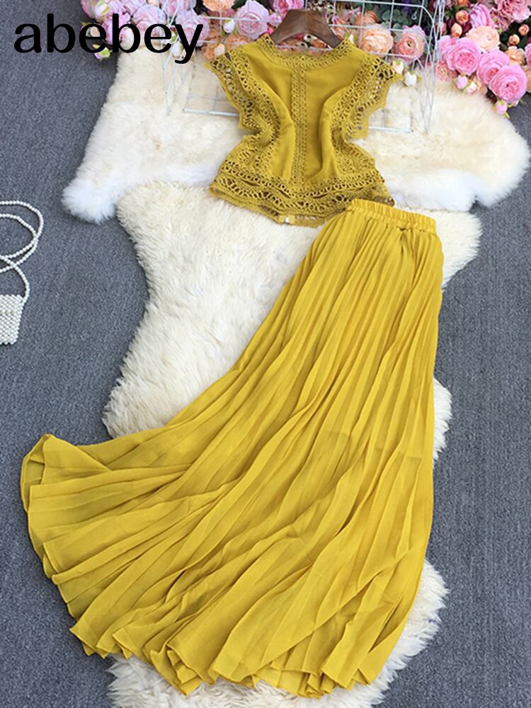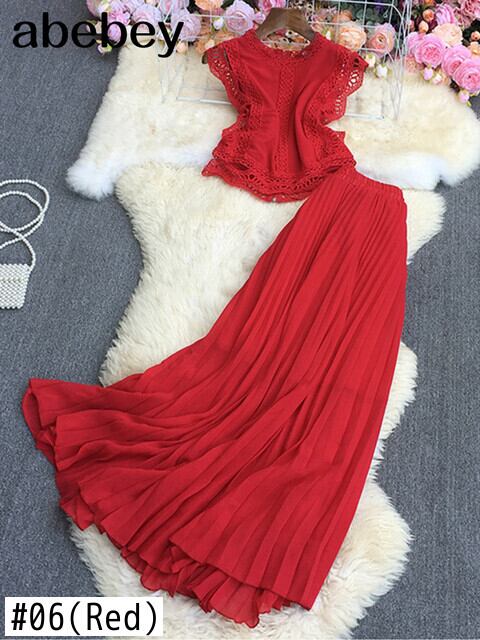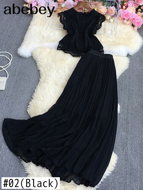 2022春秋Oネック半袖レースパッチワークシャツトップ+ハイウエストミドル丈プリーツスカート2点セット ハイウェスト ショート ハーフスリーブ スプリング 春物 オータム 秋物 Abe1848723873