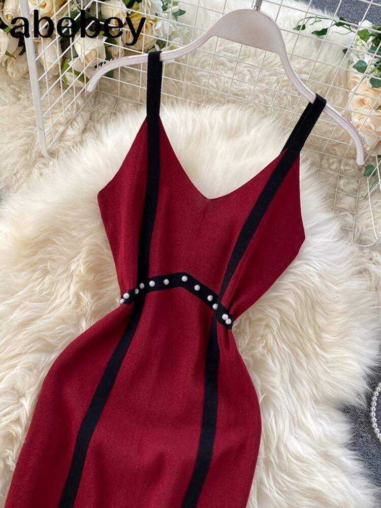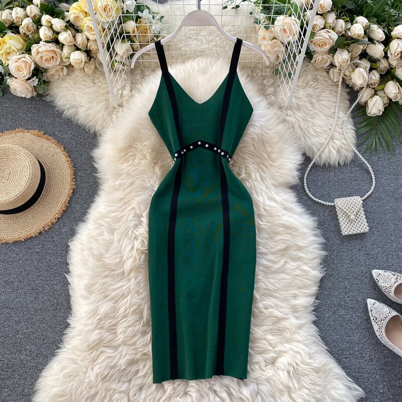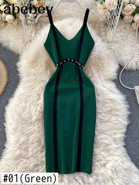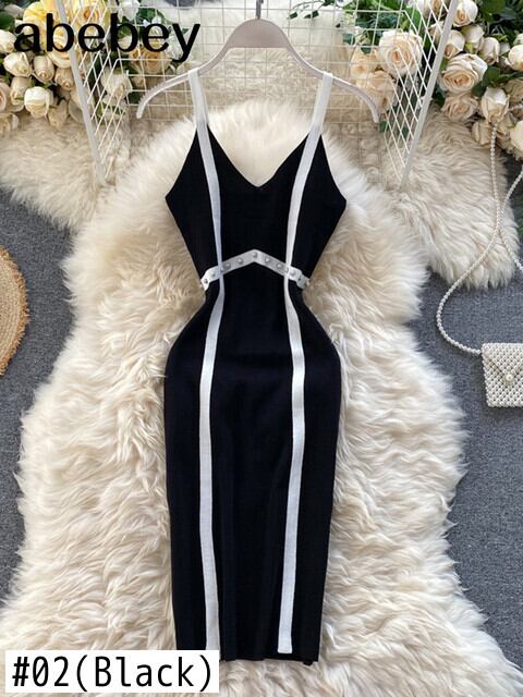 2022 夏のニットの女性のドレス V ネックのセクシーなスプリットレディボディコンドレス サマー 夏物 Vネック Abe29545458668