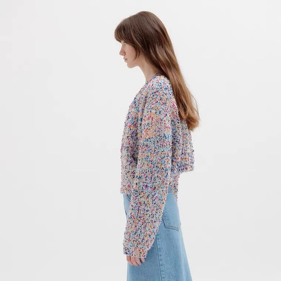 2022 カラフルなニット女性カーディガンルーズ V ネックの女性の長袖オープンステッチ紫カーディガントップコート ロング Vネック パープル Abe42148024667
