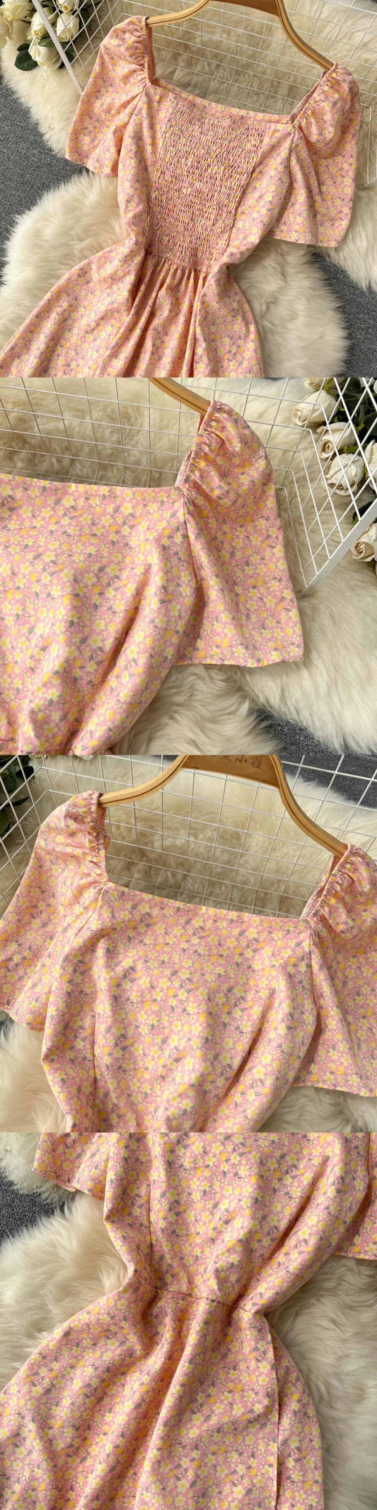 スクエアカラーポルカドットドレス女性ショートパフスリーブ 2022 夏のビーチサンドレスフレンチスウィートシフォンロングドレス 大人ガーリー キュート カジュアル サマー 夏物 スクウェア Abe49834044620