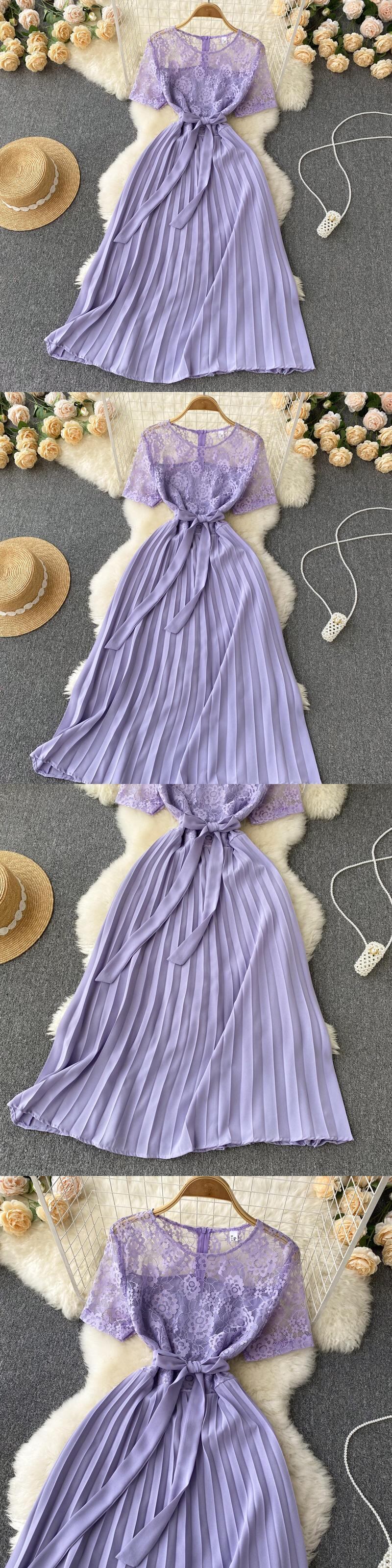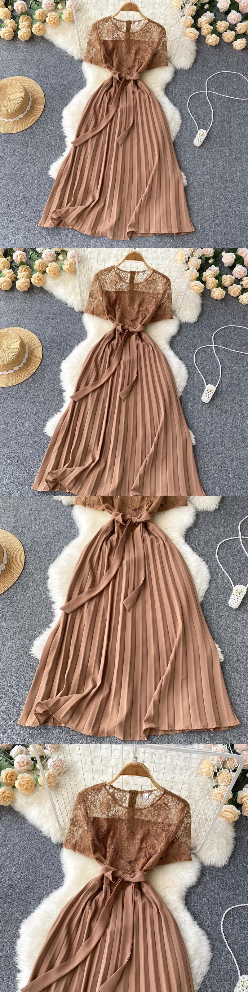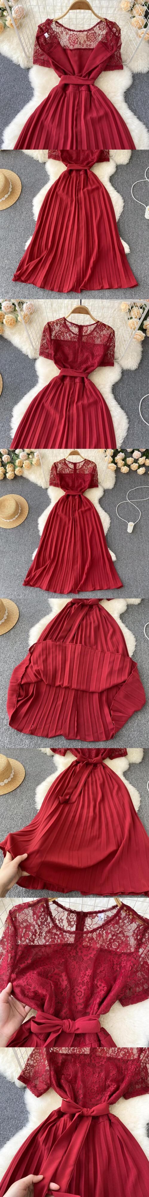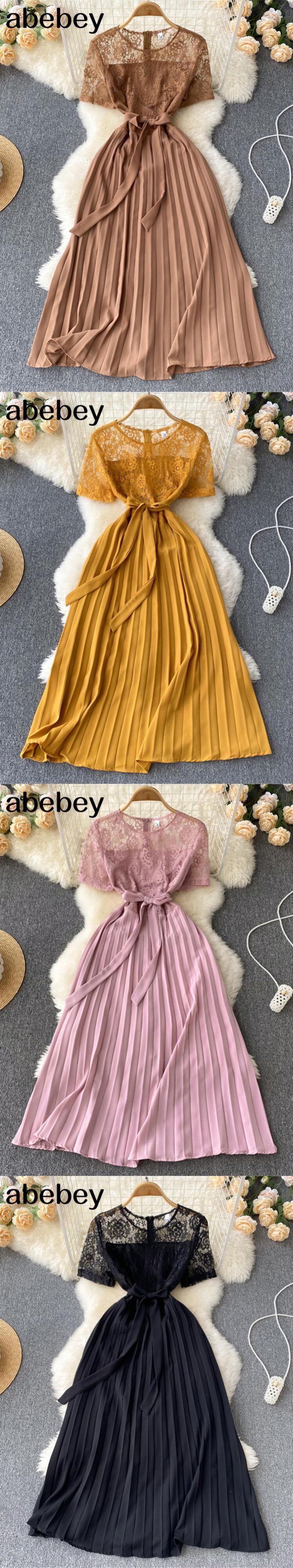 夏の服の女性のドレス 2022 甘い刺繍レースドレスラウンドネック半袖コージールースミディドレス ショート ハーフスリーブ 大人ガーリー スウィート キュート カジュアル サマー 夏物 Oネック Abe51451587696