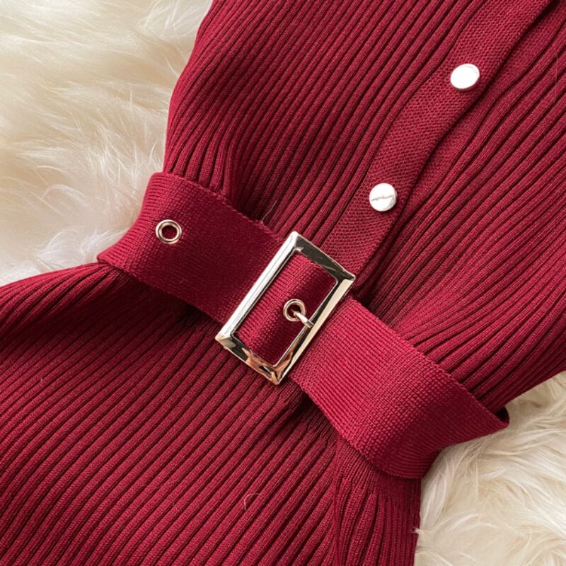 ドレスニットセクシーなクラブシースボディコンドレス女性ソリッドサッシストレッチボタン Vestidos 2022 夏ローブ 17282 サマー 夏物 ソリッドカラー Abe99140436774