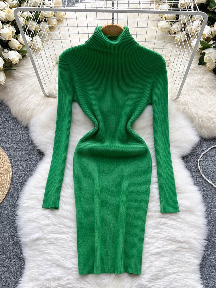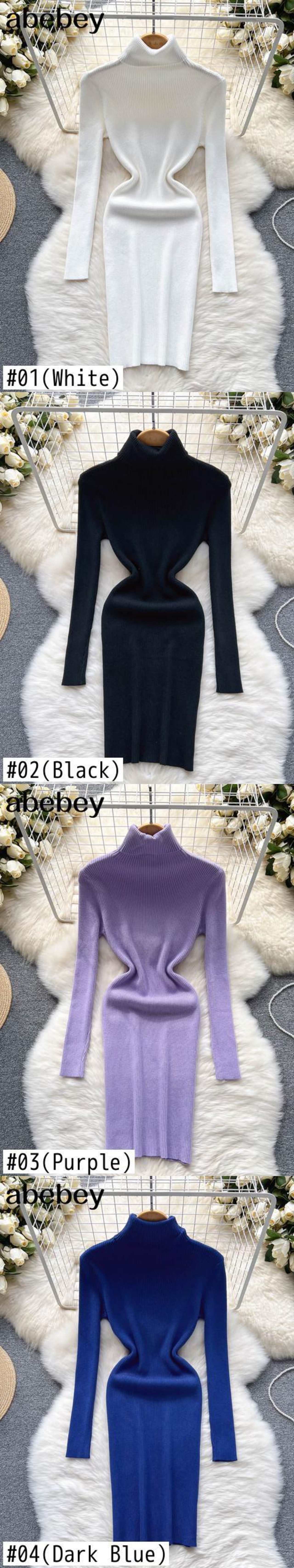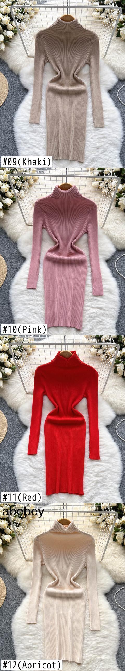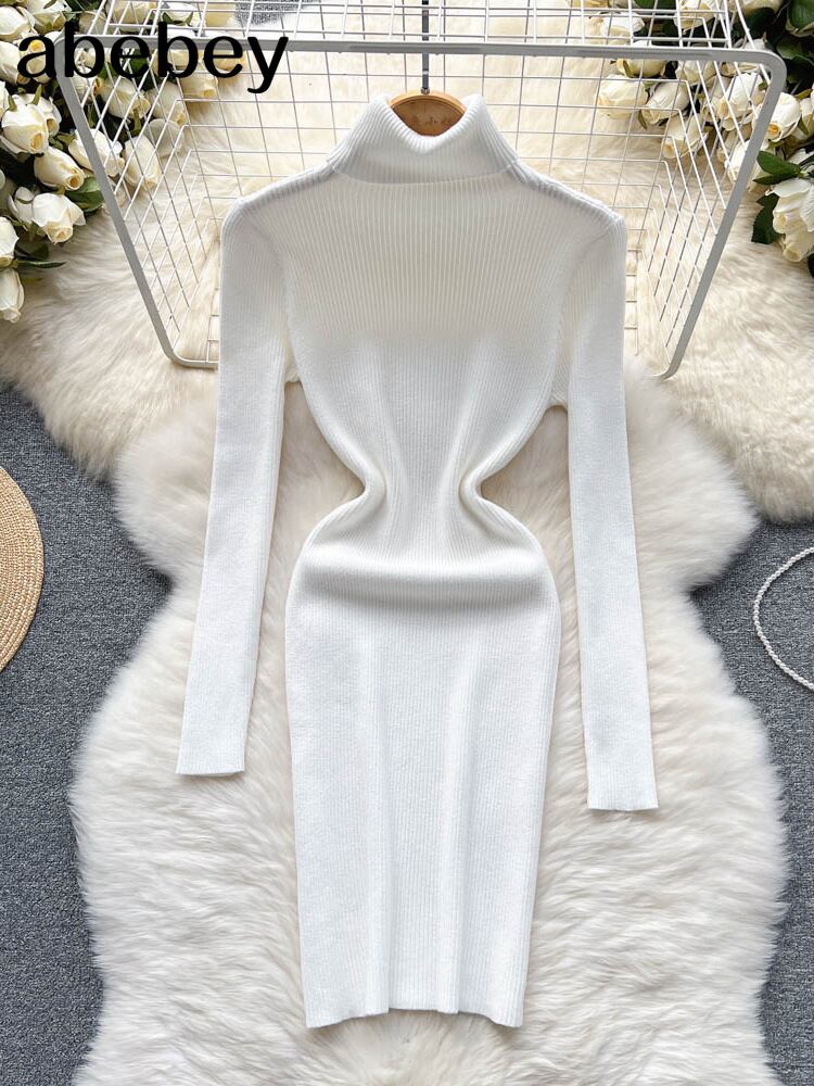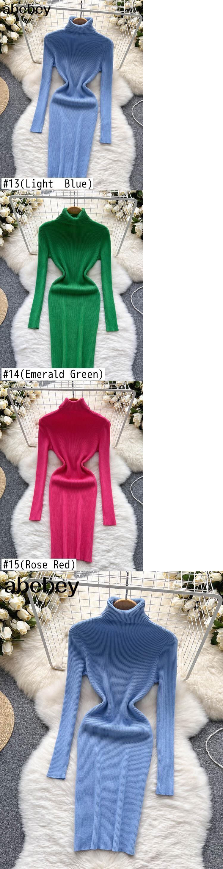 秋シース女性ドレスタートルネック長袖 A ラインボディコンドレス固体ストリートニットドレス ロング オータム 秋物 Aライン ソリッドカラー Abe48262063514