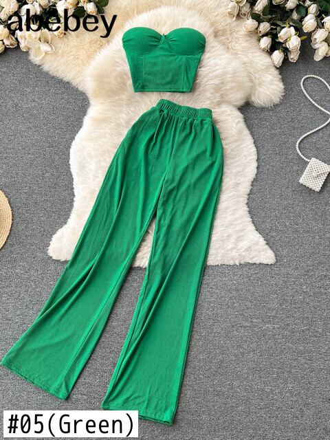 女性ソリッドセクシーなツーピースセット夏ストラップレススリムキャミソール + ワイドレッグロングパンツセットストリートツーピーススーツ サマー 夏物 ワイドパンツ ソリッドカラー Abe61186533249