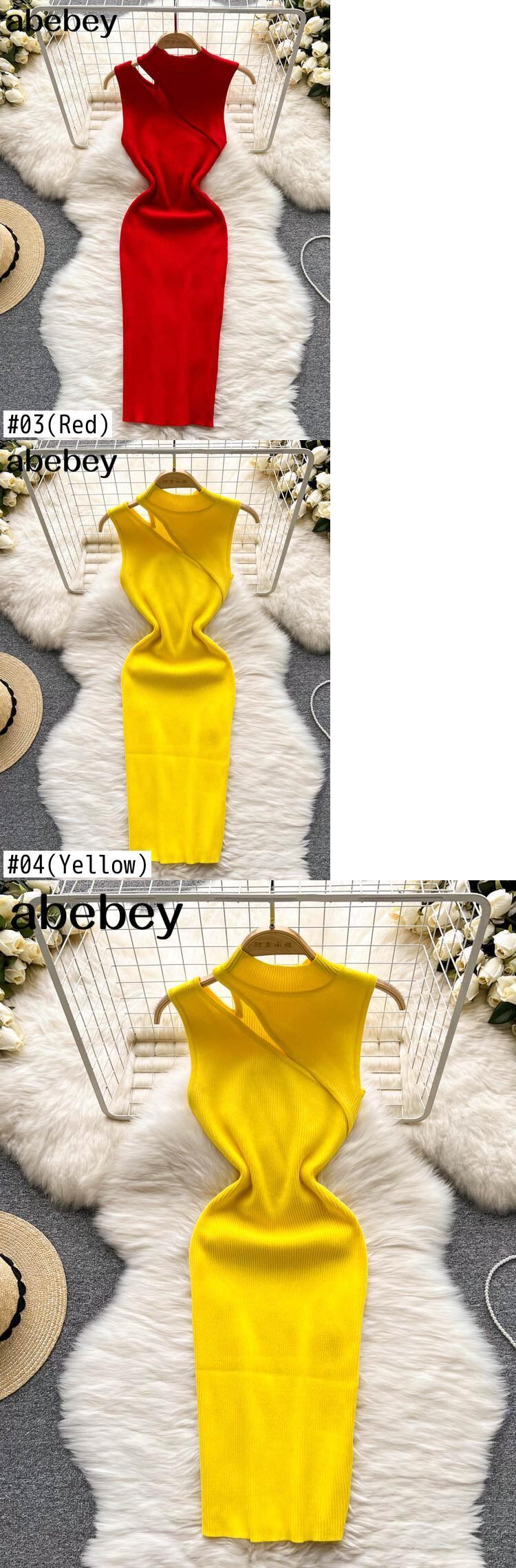 女性ニットストラップドレスセクシーなノースリーブスリム弾性ペンシルドレス夏タンクボディコンストリートミディドレス エラスティック 伸縮 サマー 夏物 Abe89472459473