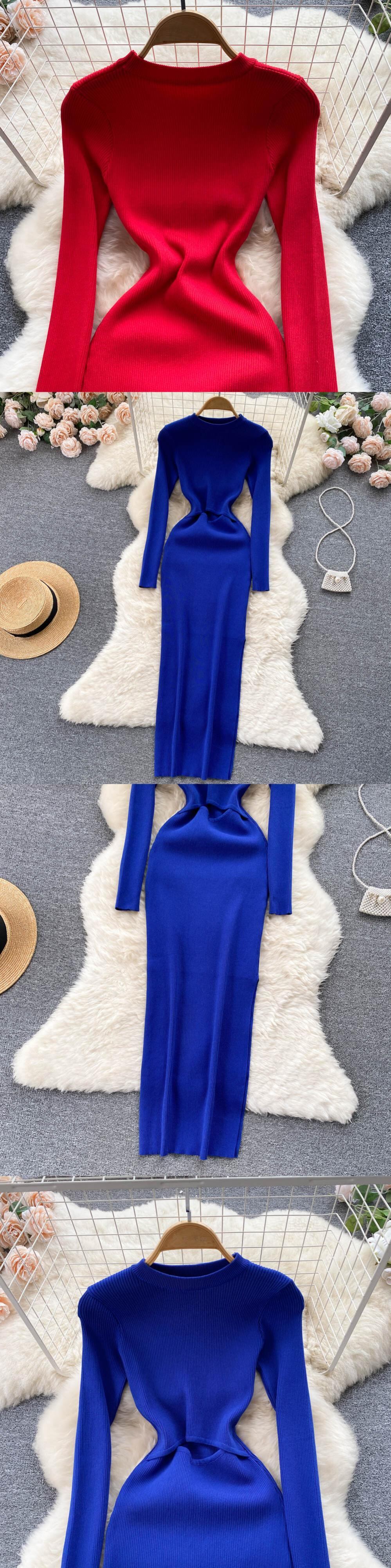 固体セクシーなセータードレス 2022 女性 O ネック長袖マキシロングドレス秋のストリートニットボディコンドレス オータム 秋物 Oネック ソリッドカラー Abe77291873534