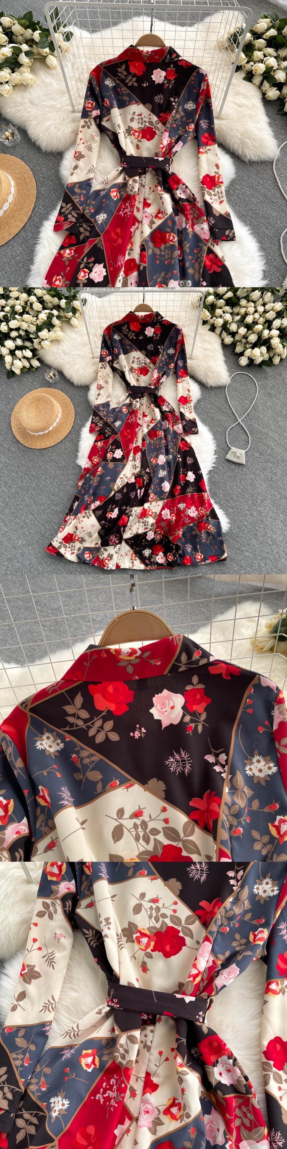 滑走路シャツドレス 2022 秋の女性長袖幾何学模様オフィスワークミディドレスとベルト ロング オータム 秋物 ハーネス 会社 学校 通勤や通学にも Abe66178993182
