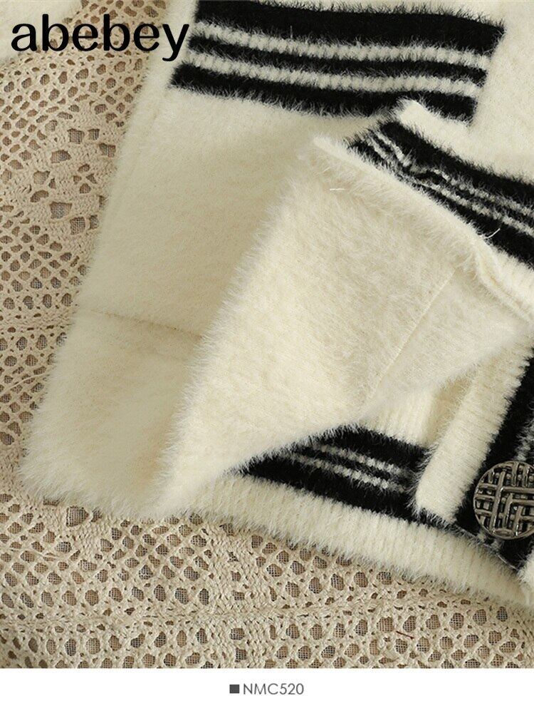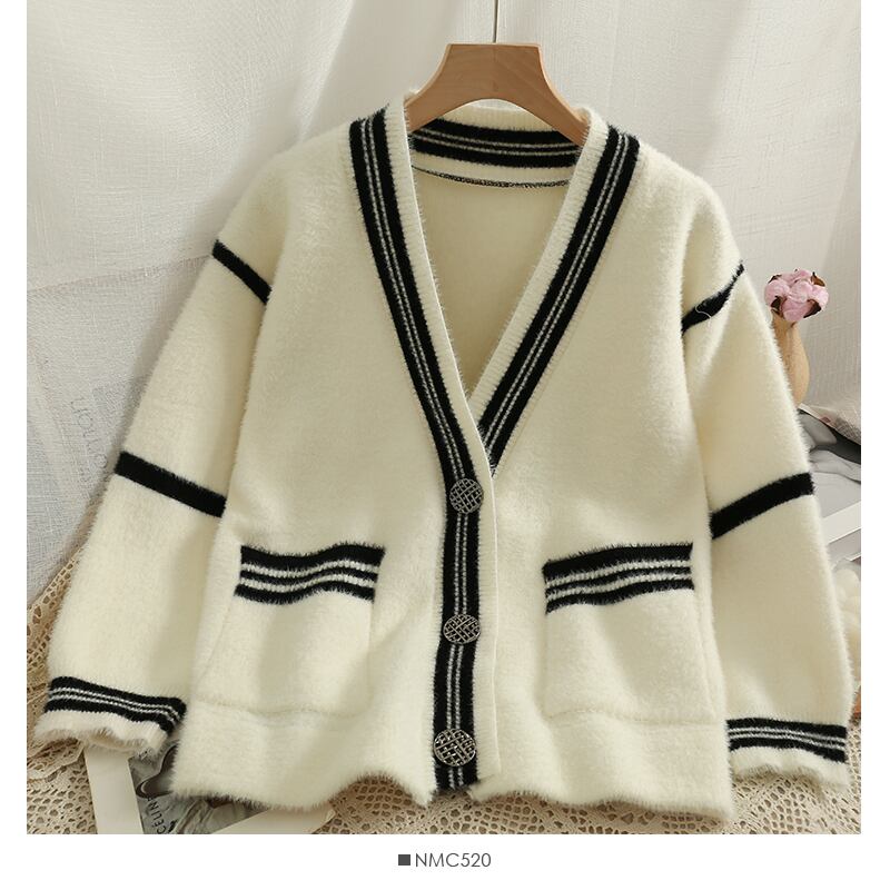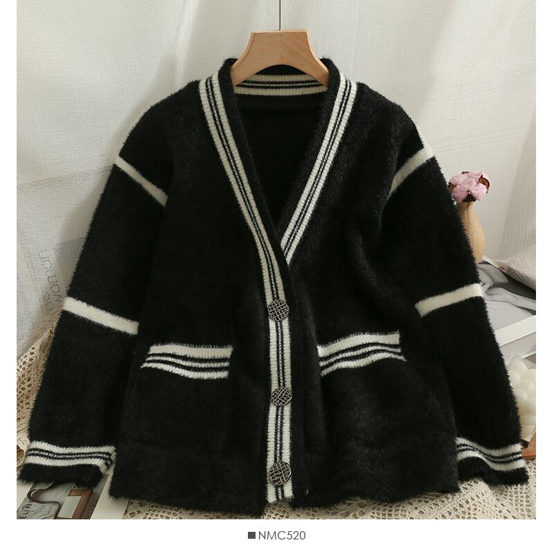 女性のカーディガン ニット ストライプ セーター女性冬長袖 V ネック ニット コート ロング ウィンター 冬物 Vネック Abe88720682203