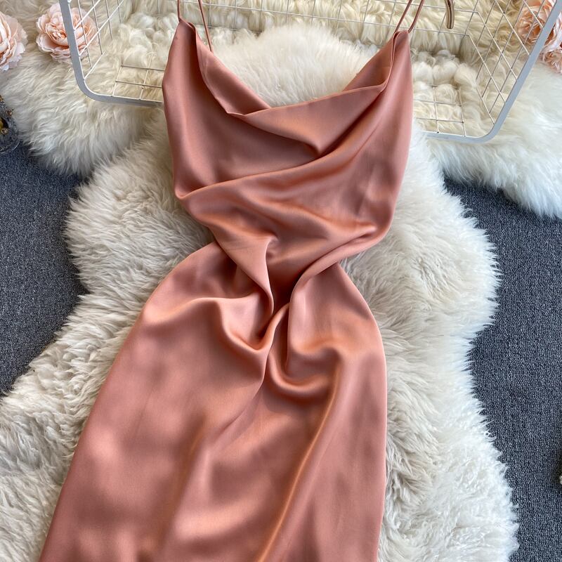 ボヘミアン スパゲッティ ストラップ ストラップレス ノースリーブ ピンク ミディ サマー ドレス クロス バンデージ バックレス ソリッド セクシー クラブ ドレス A ライン Vestido 夏物 Aライン ソリッドカラー Abe66441460945