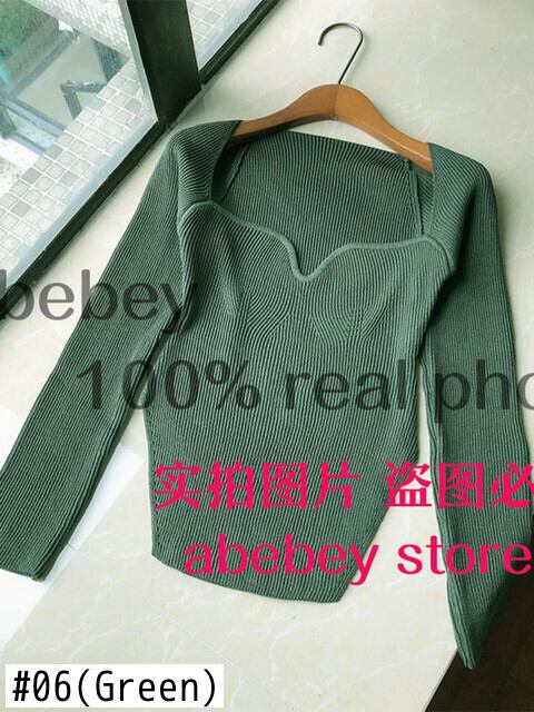 2022 春の新作セクシーなスタイリッシュな sqaure 襟フルスリーブニットプルオーバーセクシーなスリム Tシャツ女性トップ WK08001L スプリング 春物 Abe96035964476