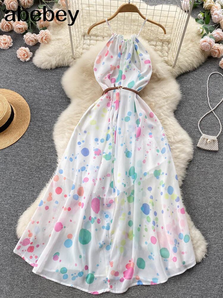 夏の女性の花スパゲッティストラップロングドレスボヘミアンバケーションビーチマキシローブピンク/ホワイト A ライン Vestidos サマー 夏物 花柄 Aライン Abe66612810580