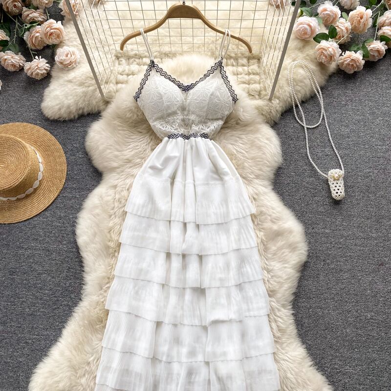 2022 ストラップ夏自由奔放に生きる女 ロング ホワイト レース 刺繍 サマー 夏物 ビーチ Abe73165543269