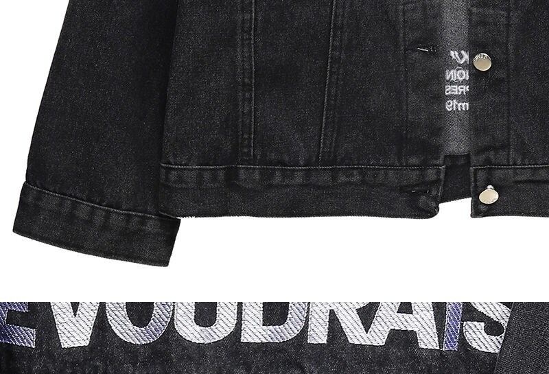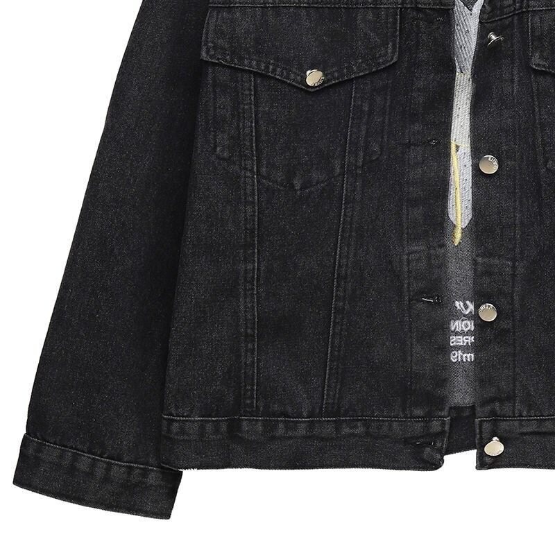 秋のデニムジャケット女性 2022 刺繍スリングブレストルース春コート黒オーバーコート ブラック スプリング 春物 オータム 秋物 Abe48734408337