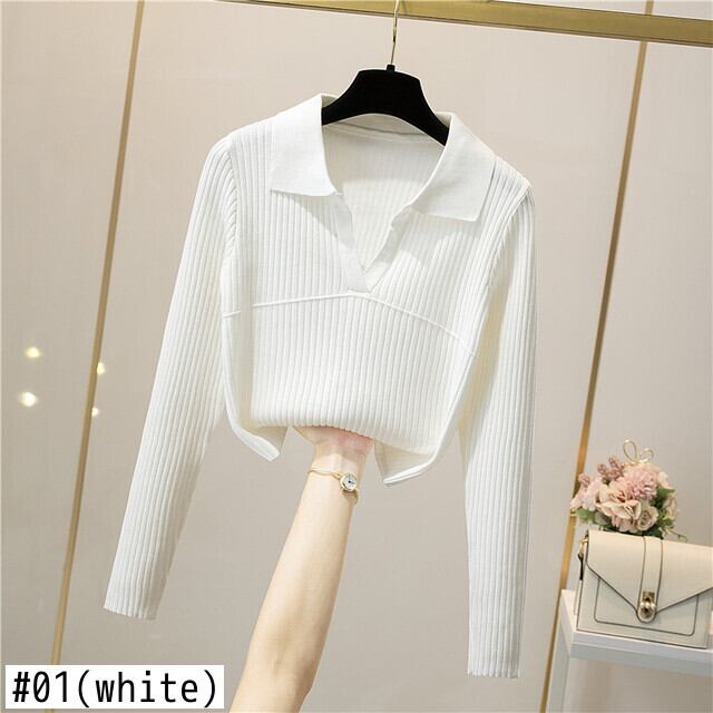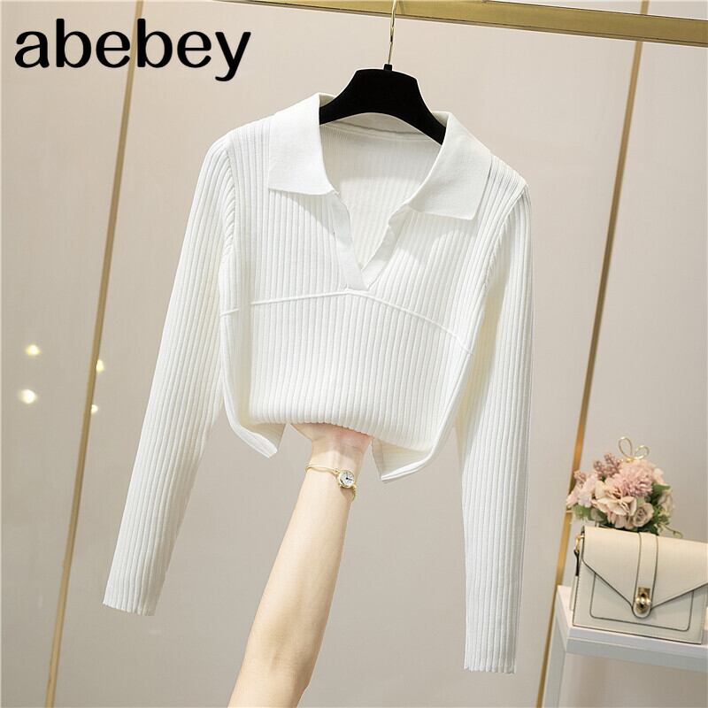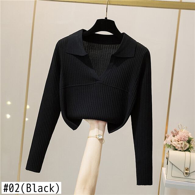 秋ニットセーター女性レトロなターンダウン襟長袖スリムベーシックトップス冬ボディコンショートプルオーバー ロング オータム 秋物 ウィンター 冬物 Abe93400870252