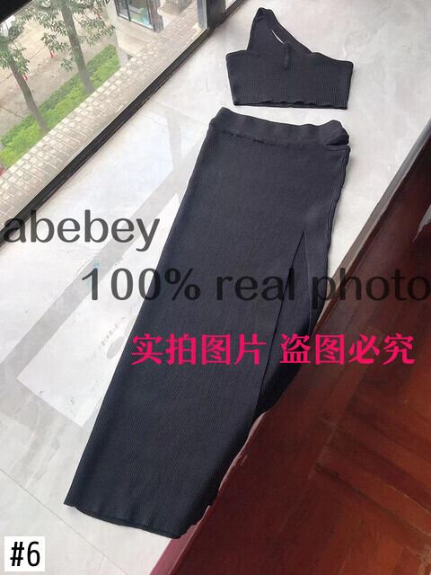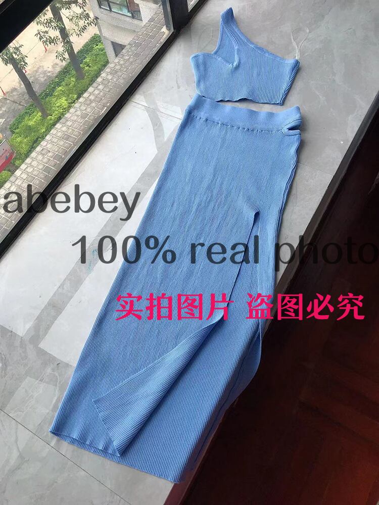 2022 ピンク夏の女性ソリッド 2 ピースワンショルダークロップトップタンクスリットミディスカートセットボディコンセクシーなパーティー衣装 サマー 夏物 ソリッドカラー Abe77919791225