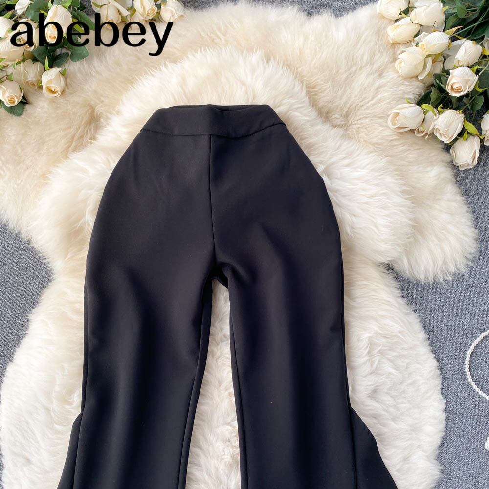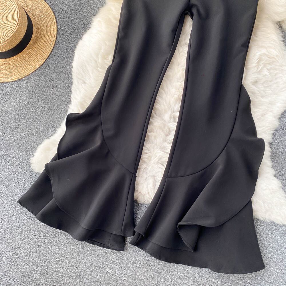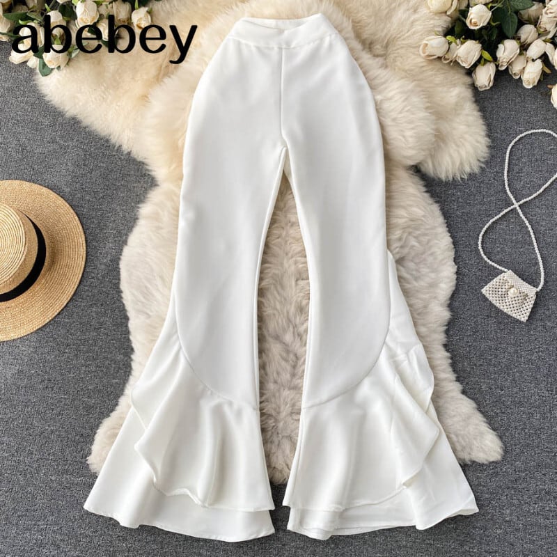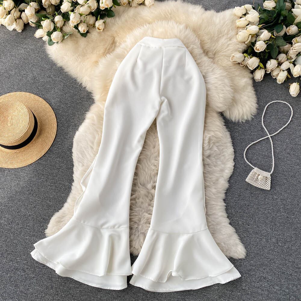 女性フレアパンツフリルウエストホワイトボトムス2022春ストリートウェアブーツカットパンツ ラッフル スプリング 春物 Abe40819135790