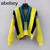 女性セーターニットカーディガンヒットカラー長袖 V 襟ルーズワイルドスタイル 2022 秋 15XM263 ロング オータム 秋物 Abe97563363812