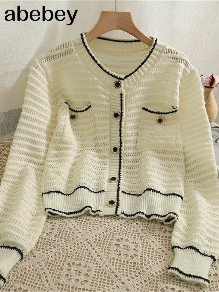 レディース ストライプ ニット カーディガン セーター 長袖 ボタンアップ アウターウェア シックなトップス ロング Abe99728237605