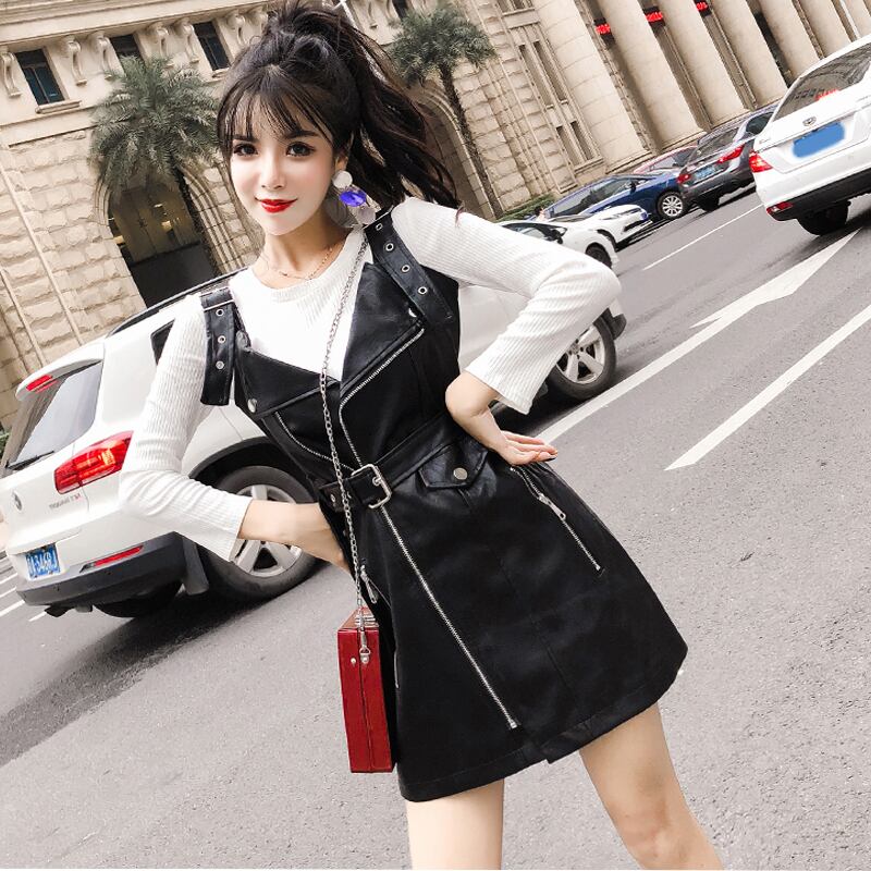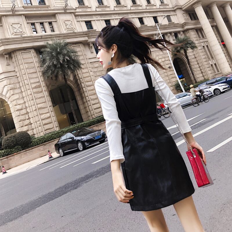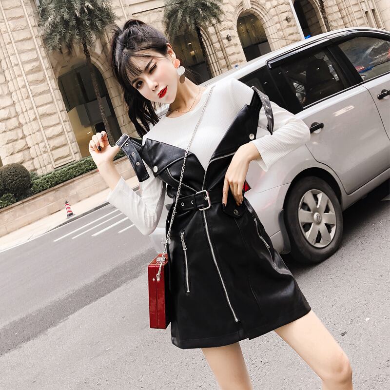 2022 秋冬女 ミニ ブラック レトロ オータム 秋物 ウィンター 冬物 レザー ハーネス ベルト ファー Vネック スリム Abe11988741818