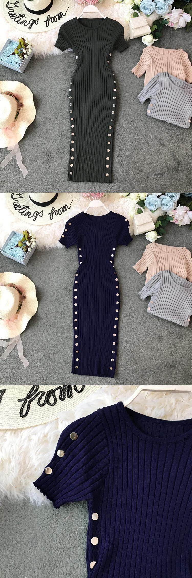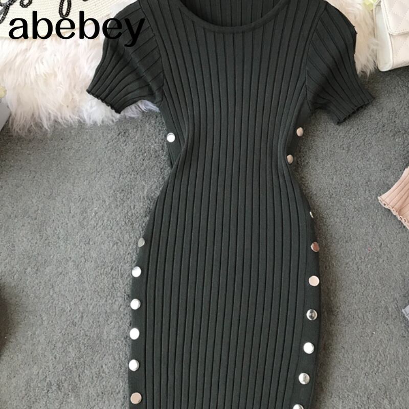ボタンドレス 2022 夏ニットオフィスドレス良い女性膝丈ボディコンドレス vestido サマー 夏物 会社 学校 通勤や通学にも Abe29413242509