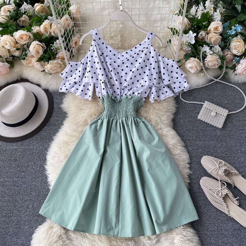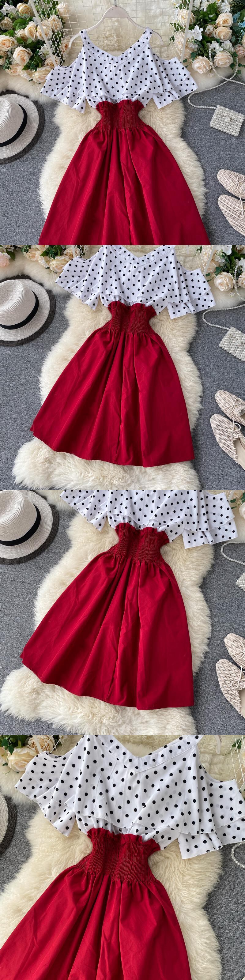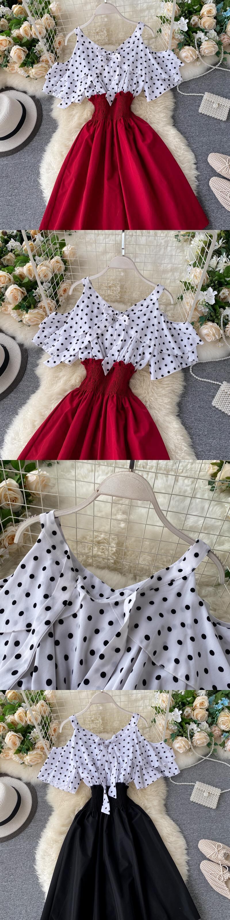女性ドレスドットパッチワーク蝶ネクタイ V ネックセクシーなストラップレス Vestidos ストレッチウエスト A ラインドレス 2022 4C029 リボン Vネック Aライン Abe43643191610
