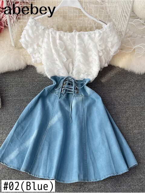 2022 春秋スウィートスラッシュネック半袖ドレスヒットカラーパッチワーククロス包帯ハイウエストショート A ラインドレス ハイウェスト ハーフスリーブ 大人ガーリー キュート カジュアル スプリング 春物 オータム 秋物 Aライン Abe64284231094
