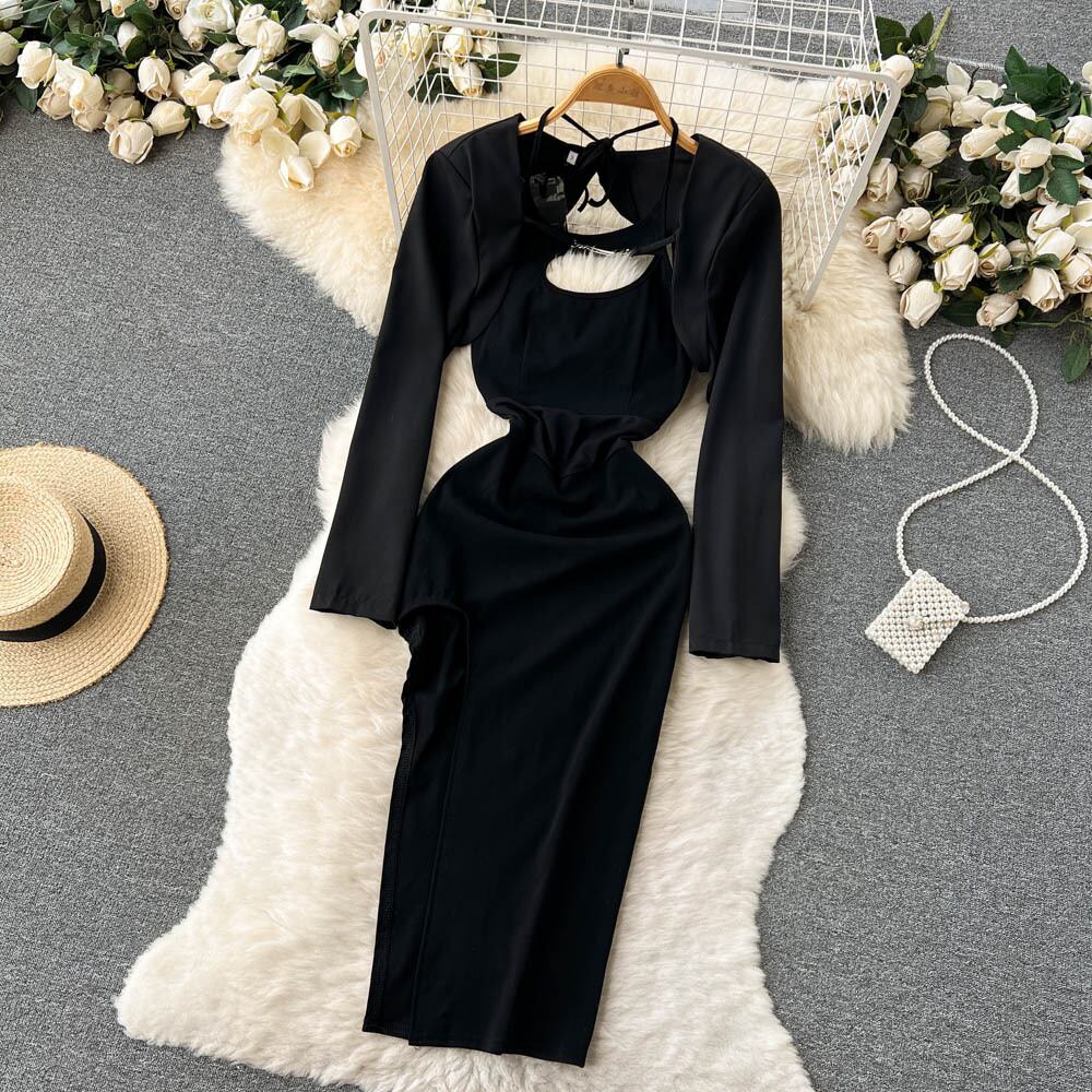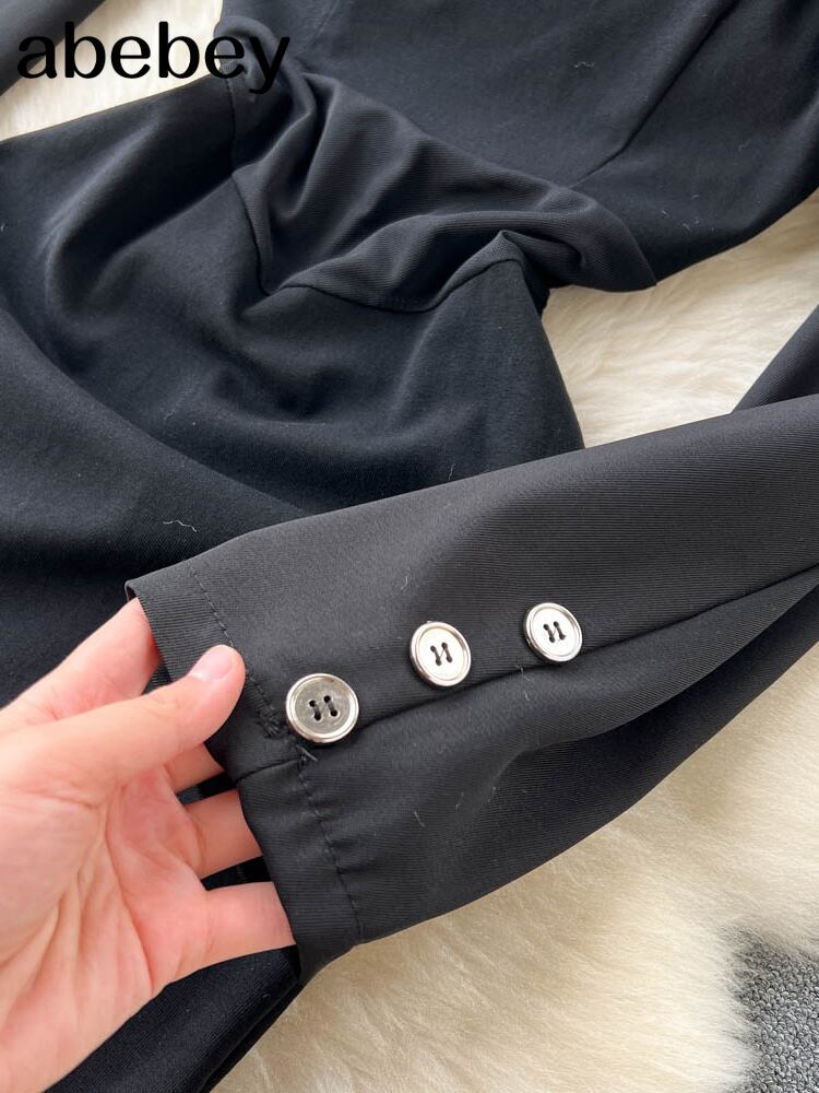 秋の女 ロング ブラック 長袖 オータム 秋物 会社 学校 通勤や通学にも Abe85563861122