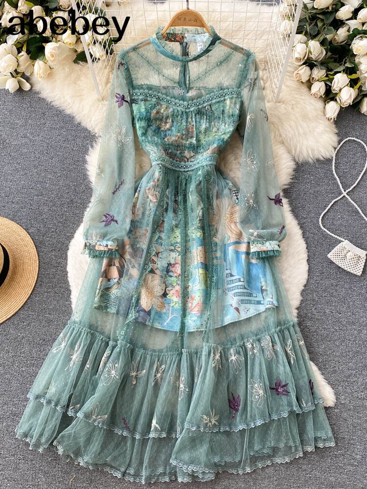 滑走路フローラル刺繍サマーパーティードレス女性ミディロング A ラインドレス美的 ZA 夏物 花柄 Aライン Abe9420294936