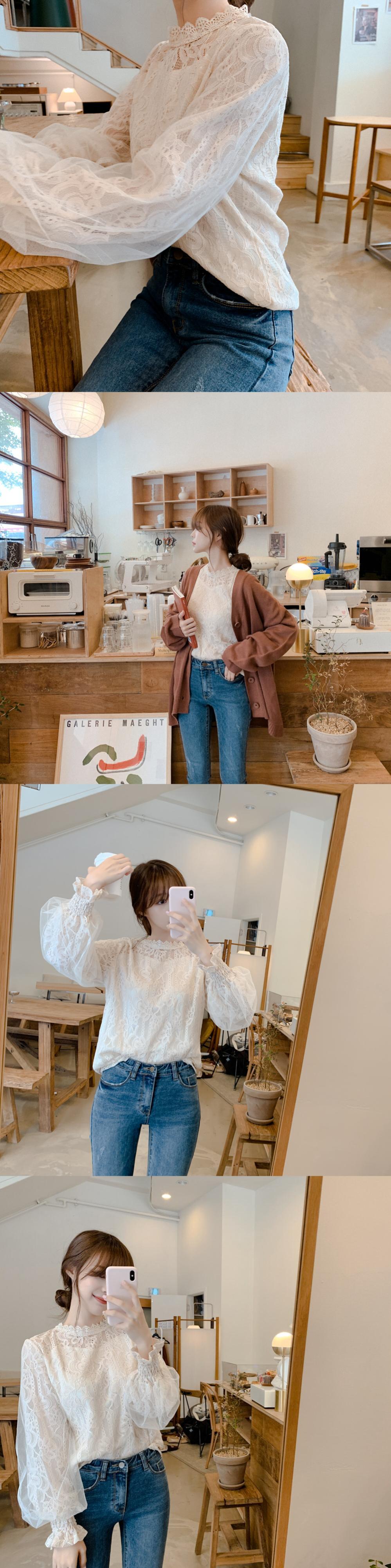 レディース メッシュ シアーブラウス シースルー ランタン 長袖ブラウス ボタン透け 白シャツ ロング ホワイト Abe2411078347