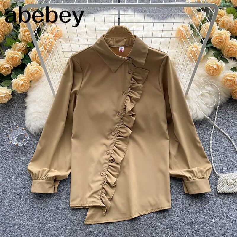 春の不規則なシャツ女性長袖無地ブラウスシックなストリートルーズトップス 2022 ロング スプリング 春物 ソリッドカラー Abe32267477465
