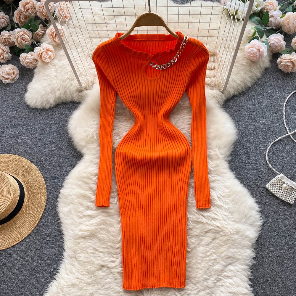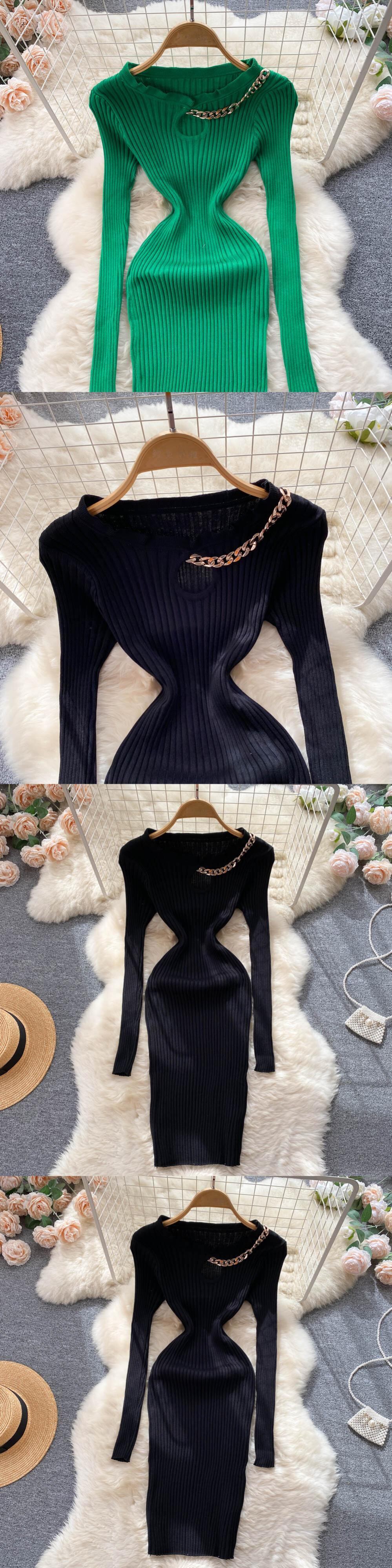 女性ニットドレス長袖 O ネック弾性スリムペンシルドレス 2022 秋のセクシーなボディコングリーンセータードレス ロング エラスティック 伸縮 オータム 秋物 Oネック Abe59452135521