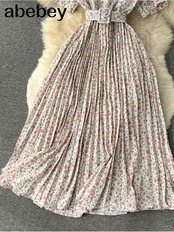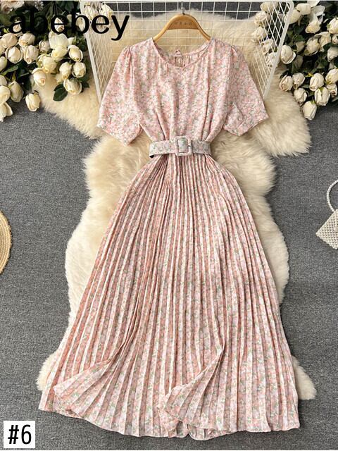 夏のレトロな 2022 女性ドレス半袖ドレス花柄プリントミディロングローブ Vestidos ビーチサンドレス ショート ハーフスリーブ サマー 夏物 Abe78984156289