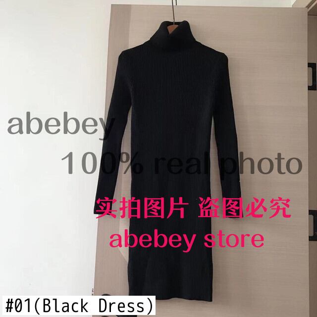 固体長袖ニットボディコン秋冬ドレス女性ミニベーシックスリムタートルネックドレス黒 Vestidos ロング ブラック オータム 秋物 ウィンター 冬物 ソリッドカラー Abe35009591902