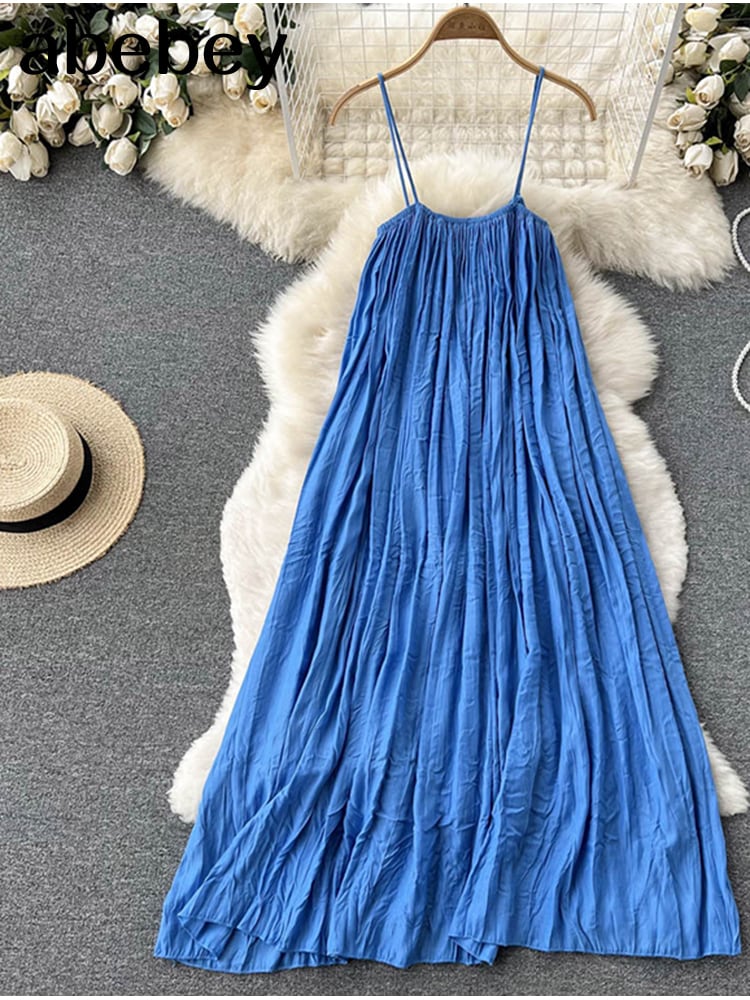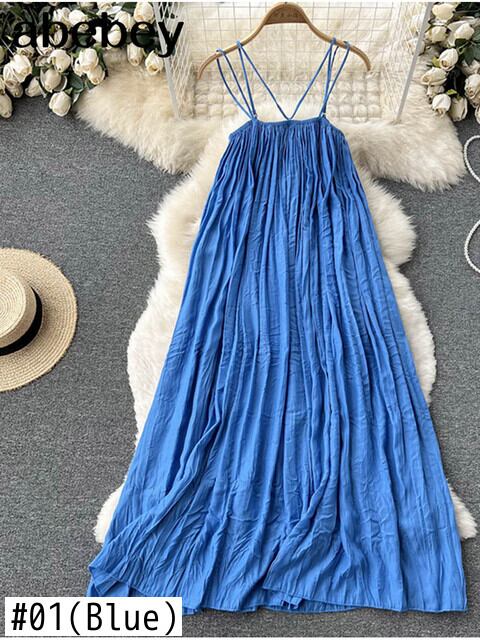 2022 夏背中ストラップビーチドレス女性ストラップレスストリートホリデープリーツサンドレスセクシーなミディロングドレス サマー 夏物 Abe73405056119